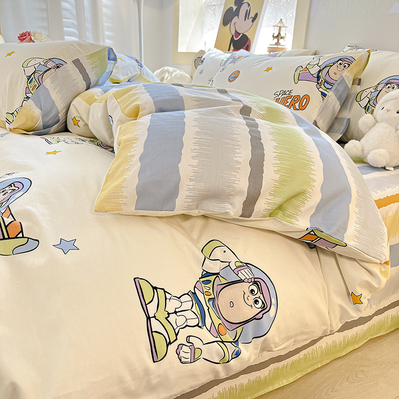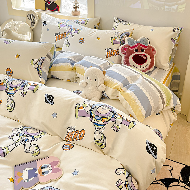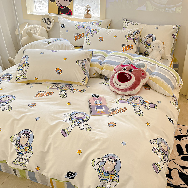 Дисней, мультяшный хлопковый комплект, простыня подходит для мужчин и женщин, пододеяльник, 4 предмета, 3 предмета