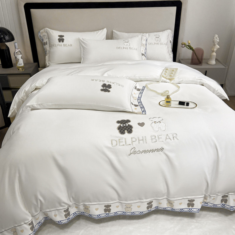 Брендовое шелковое покрывало, летний комплект, пододеяльник, шелковая простыня, 4 предмета, с вышивкой, 3 предмета