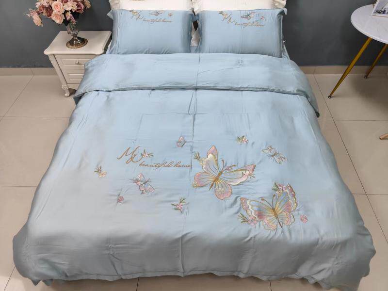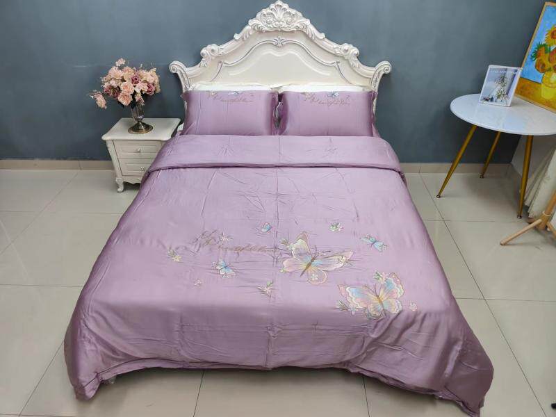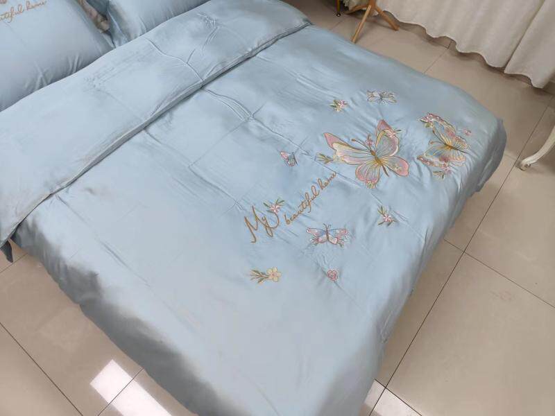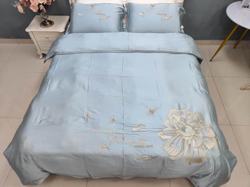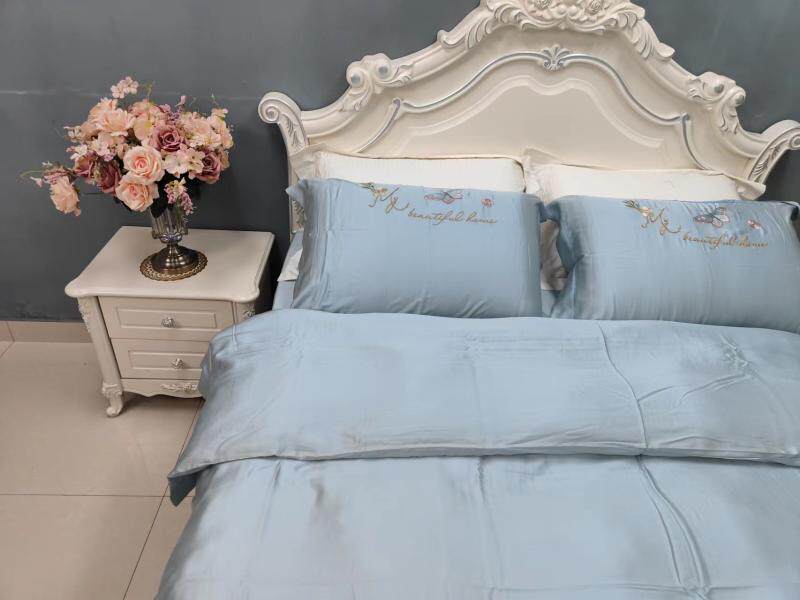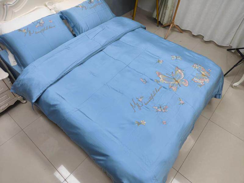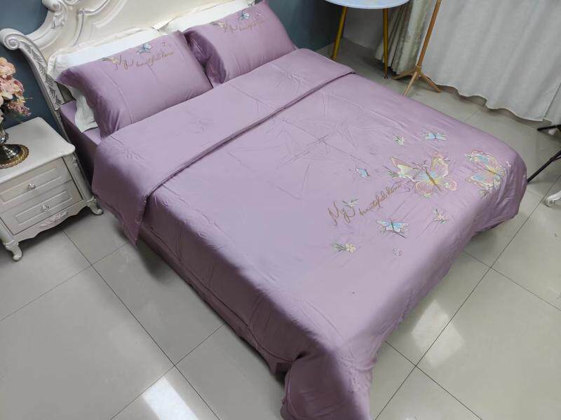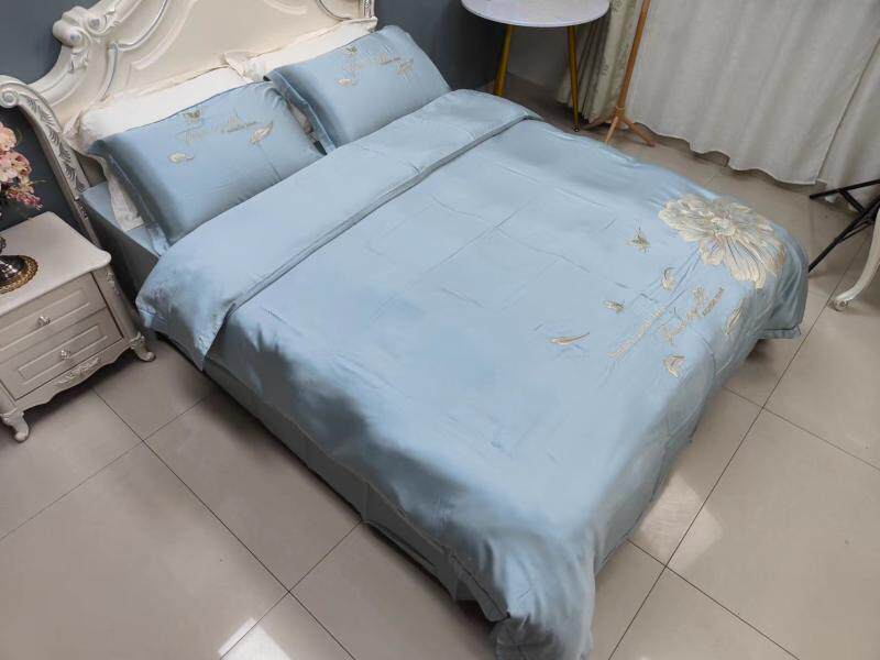 Шелковистый комплект, простыня, пододеяльник, кровать, 60 шт, с вышивкой, 4 предмета, постельные принадлежности