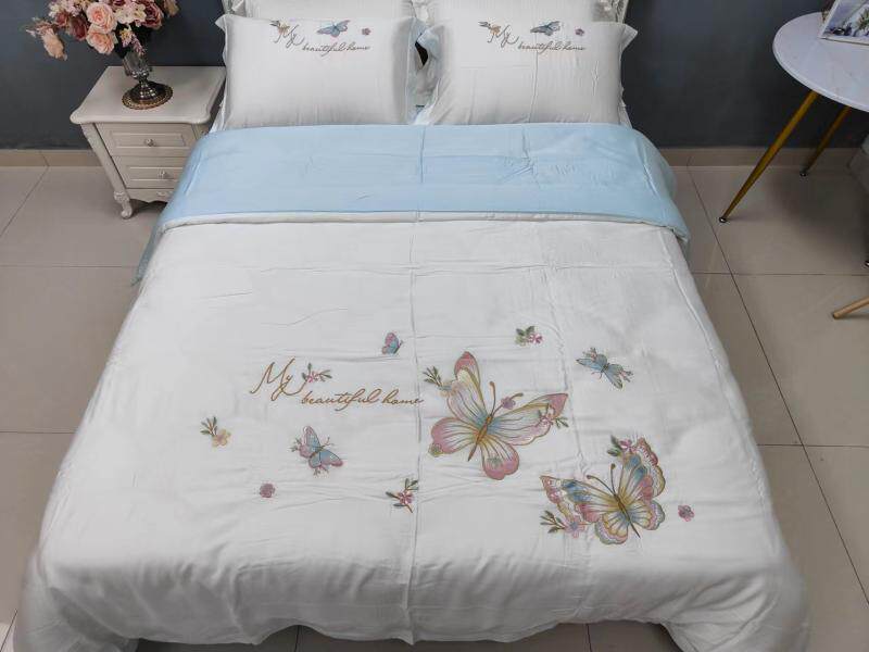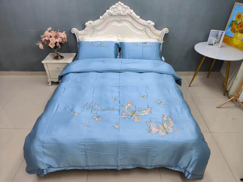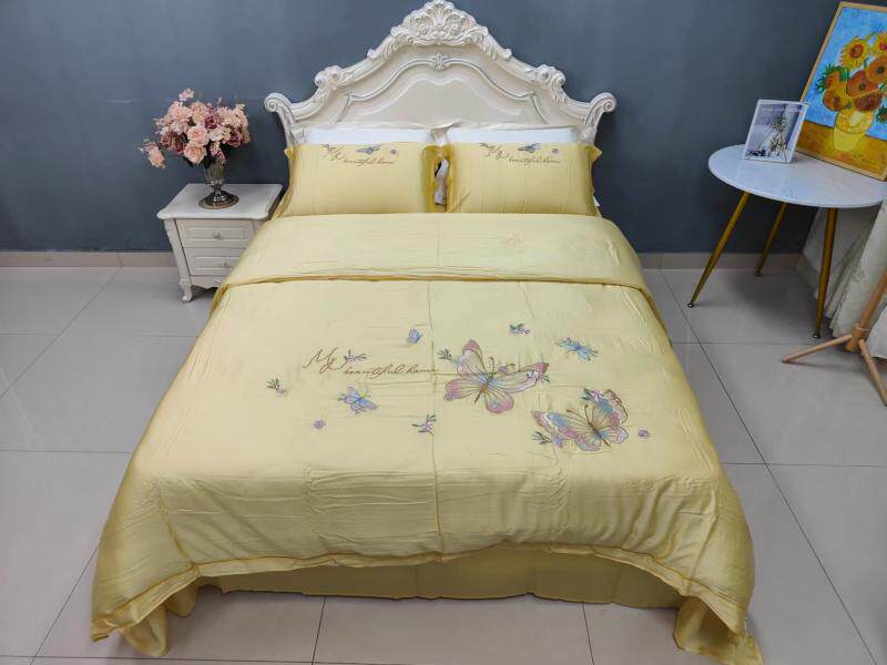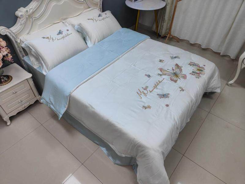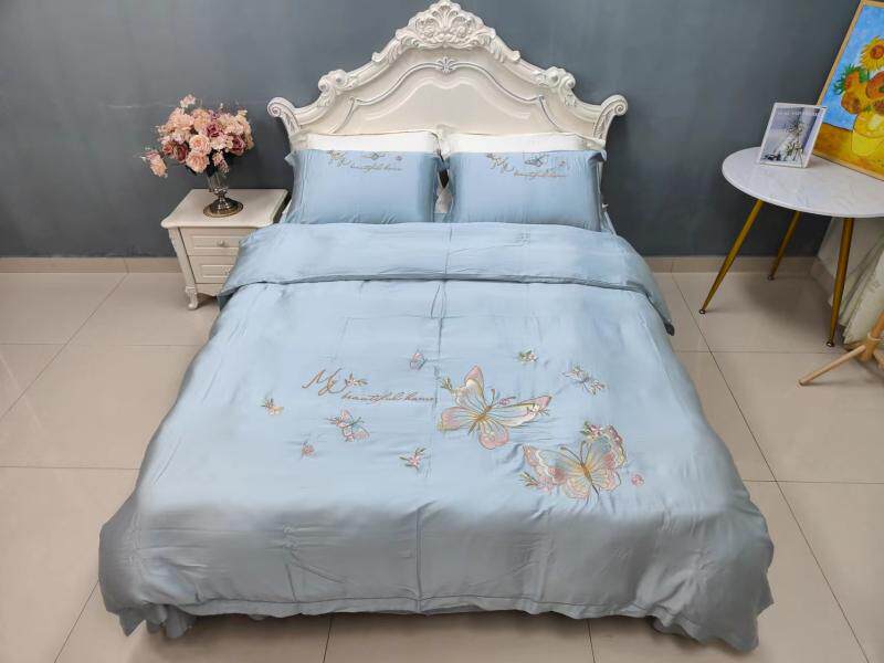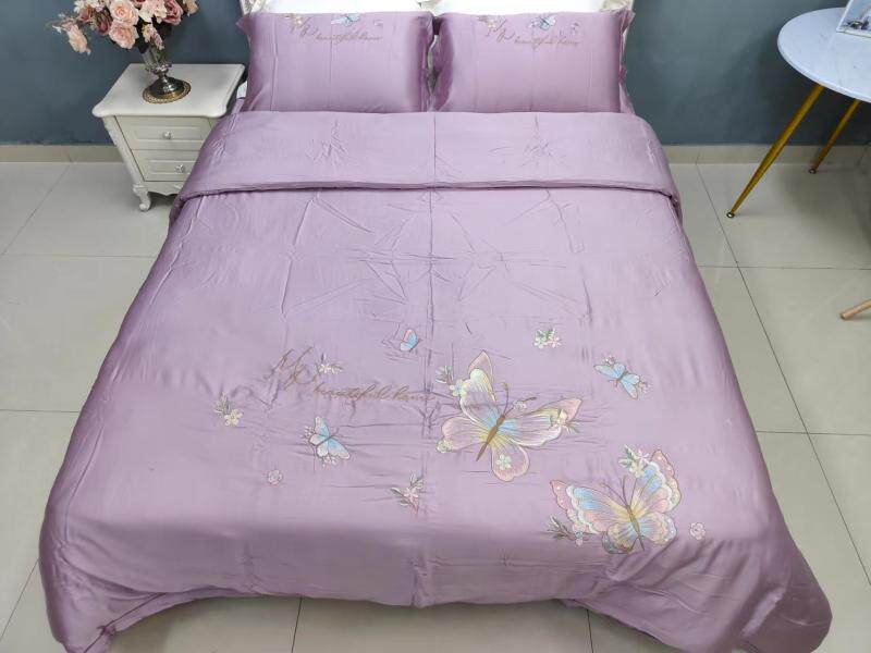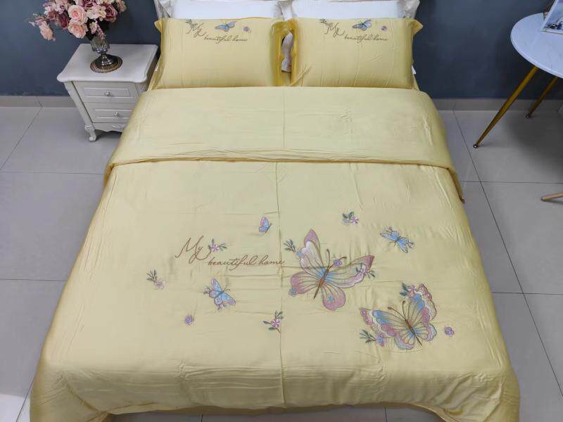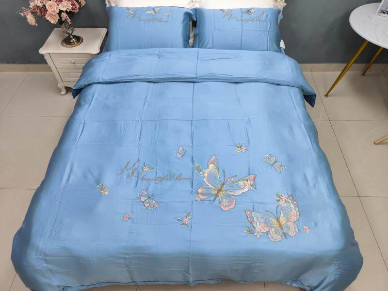 Шелковистый комплект, простыня, пододеяльник, кровать, 60 шт, с вышивкой, 4 предмета, постельные принадлежности