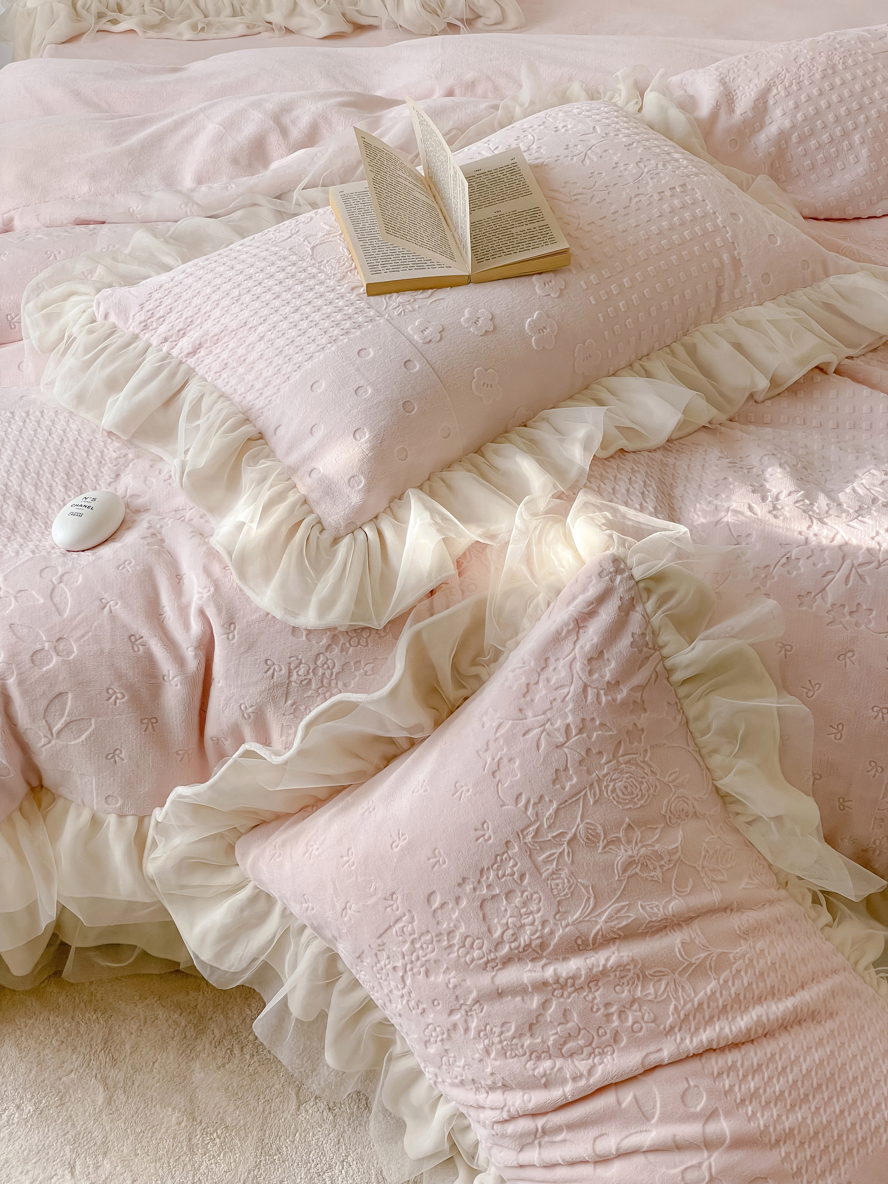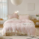Демисезонный утепленный двусторонний комплект, коралловая простыня, пододеяльник, покрывало, французский стиль, 4 предмета