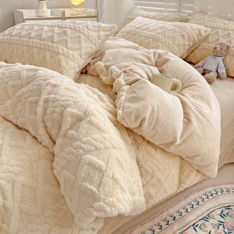 Зимний коралловый комплект, двусторонний пододеяльник, фланелевая простыня на флисовой подкладке, легкий роскошный стиль, скандинавский стиль, 4 предмета, увеличенная толщина