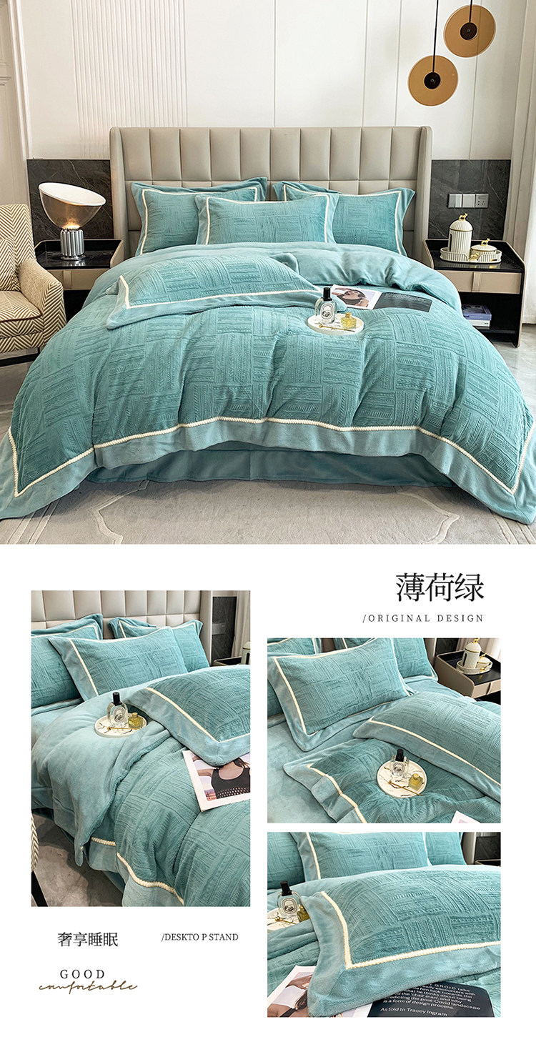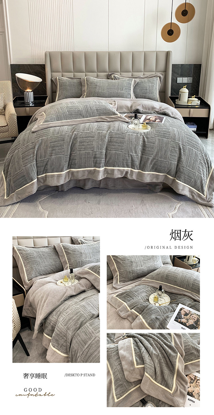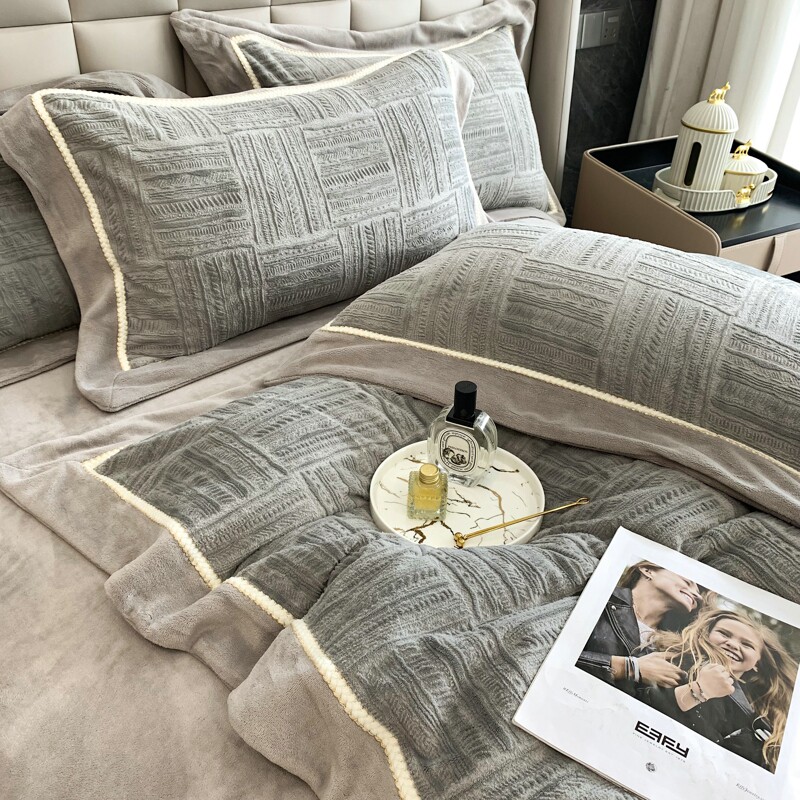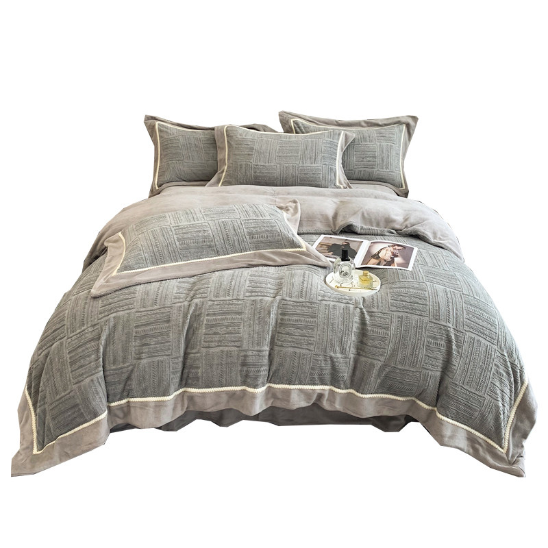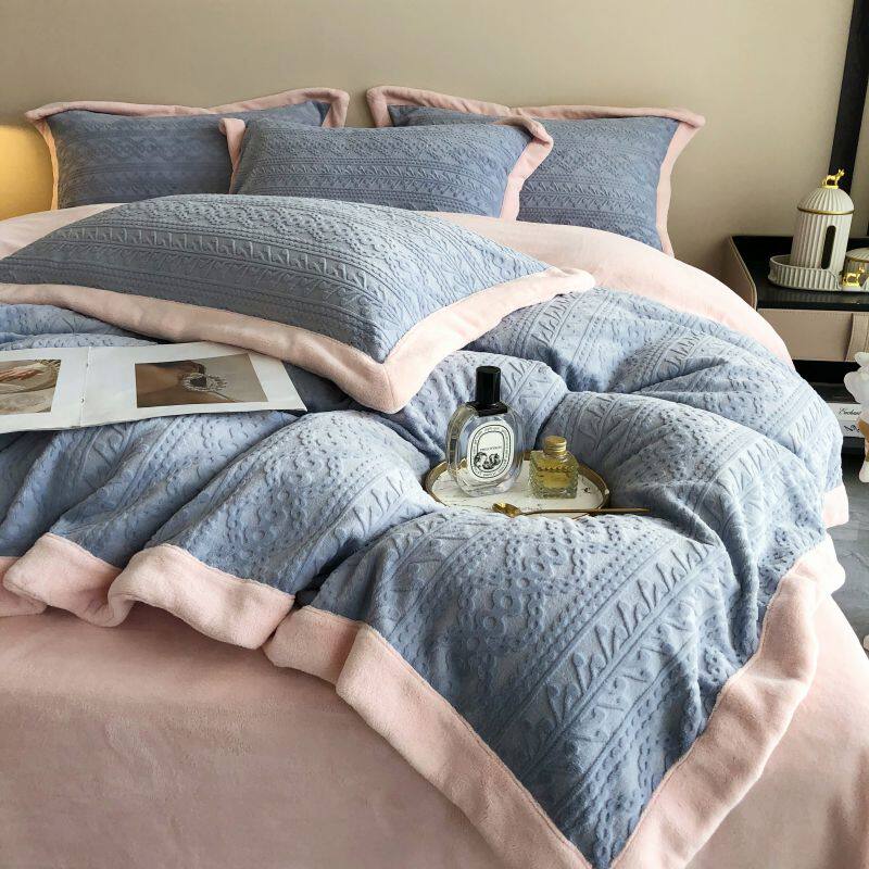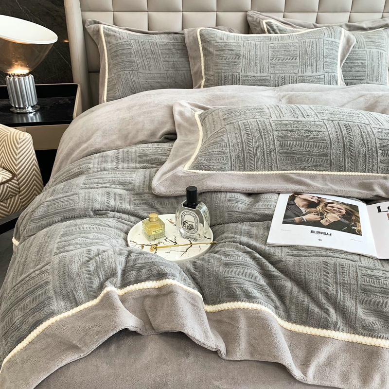 Двусторонний коралловый зимний комплект, фланелевый пододеяльник, простыня, покрывало, легкий роскошный стиль, увеличенная толщина, 4 предмета