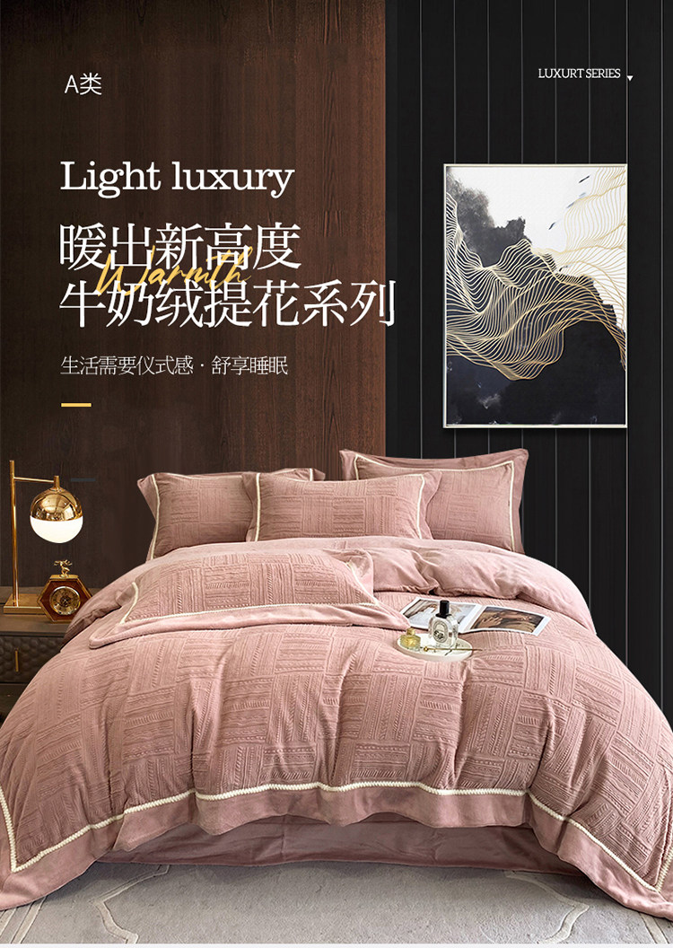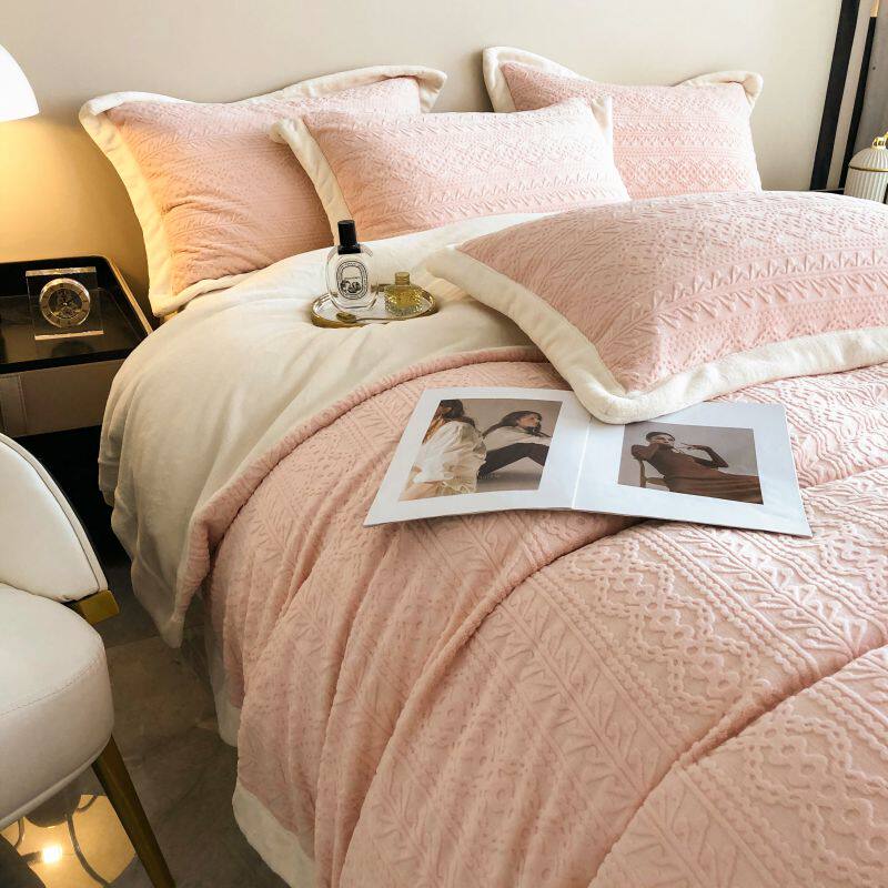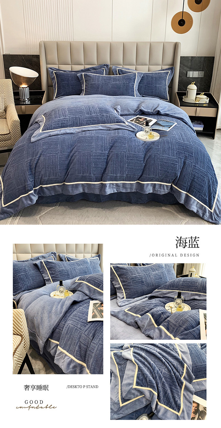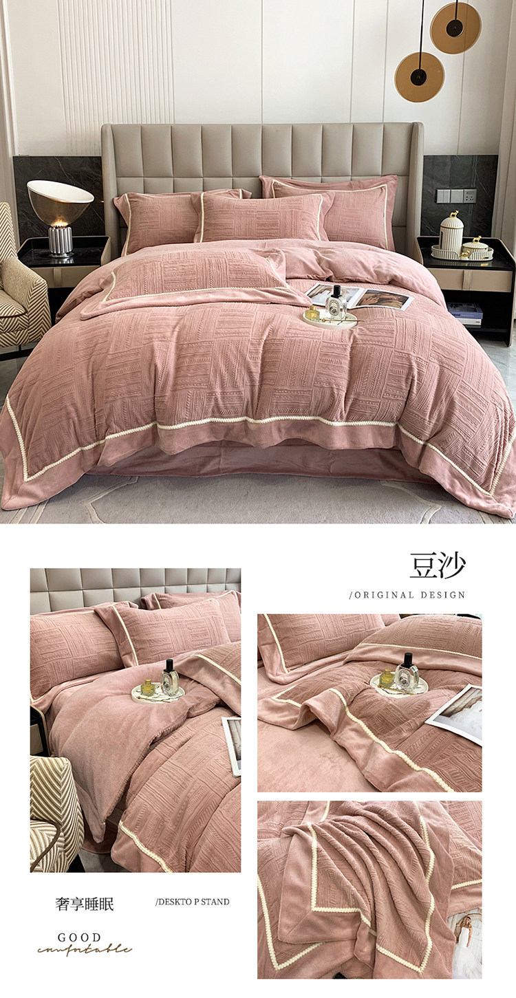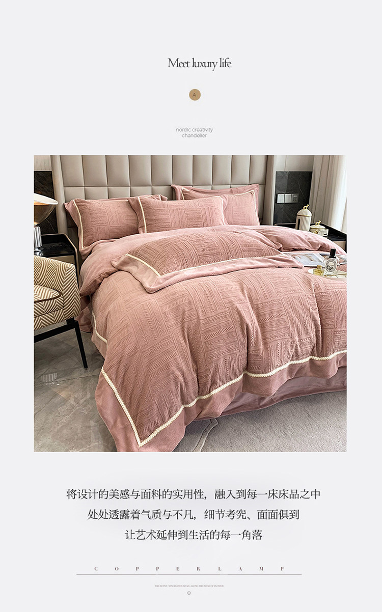 Двусторонний коралловый зимний комплект, фланелевый пододеяльник, простыня, покрывало, легкий роскошный стиль, увеличенная толщина, 4 предмета
