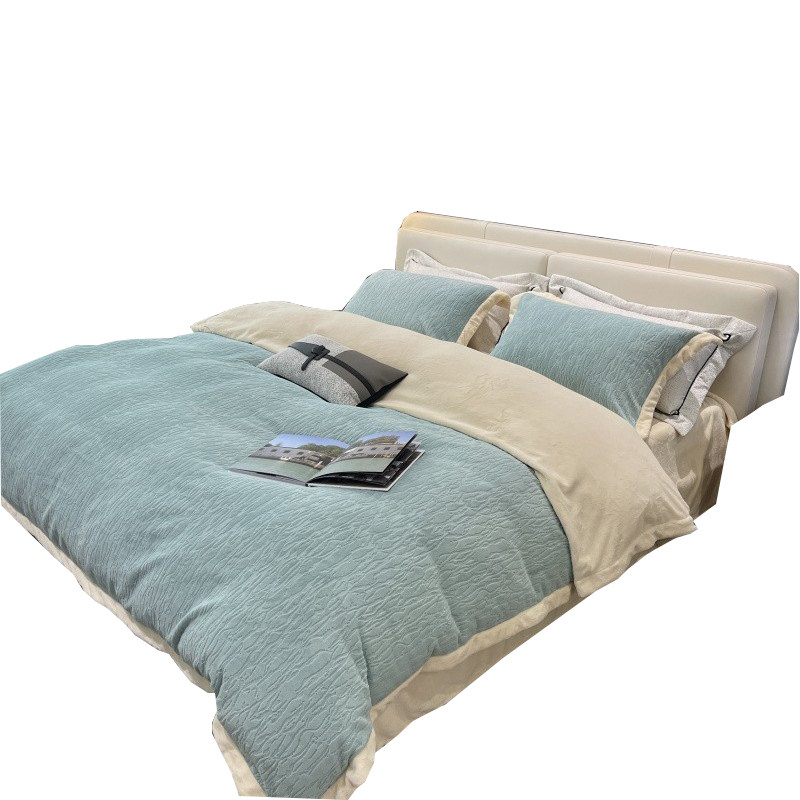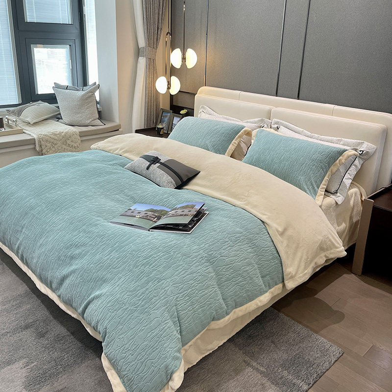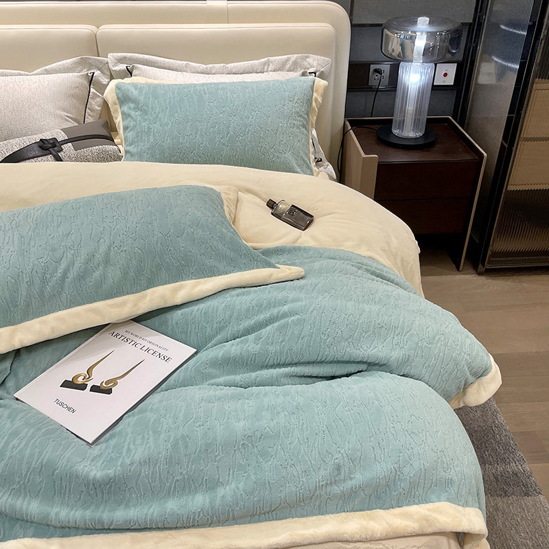 Зимний флисовый коралловый комплект, утепленный двусторонний пододеяльник, покрывало, 4 предмета