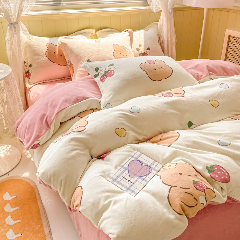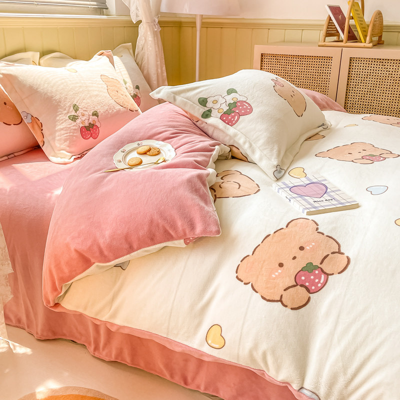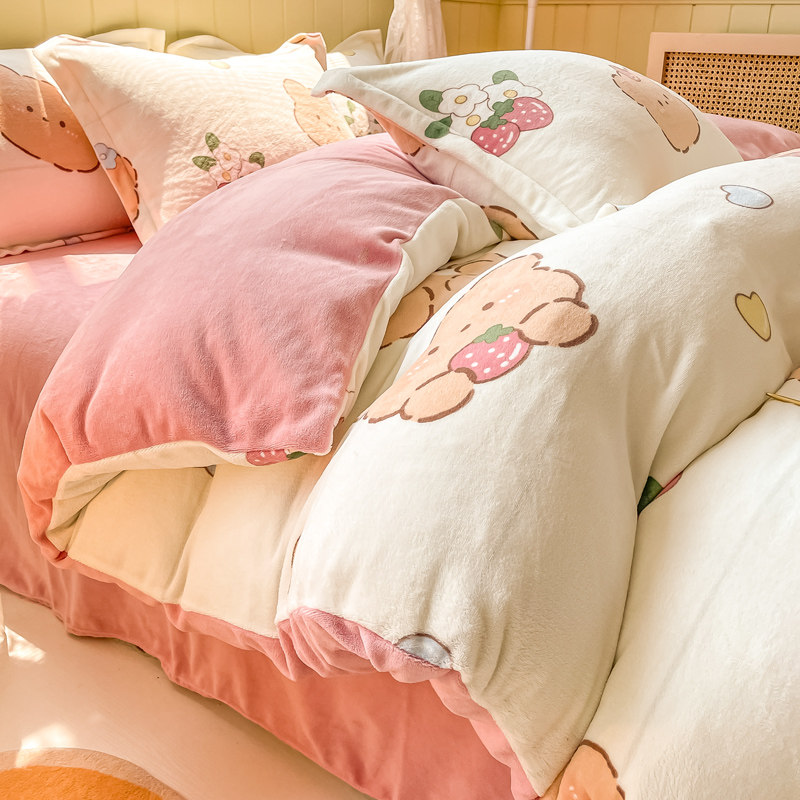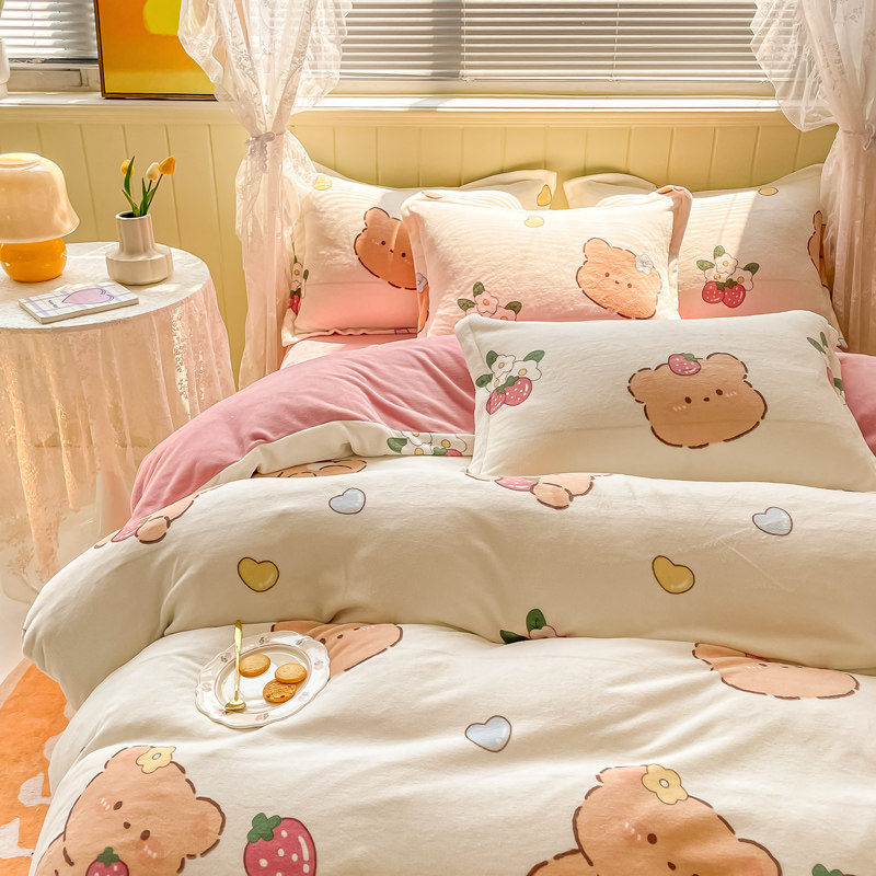 Зимний коралловый комплект, фланелевая простыня, флисовый пододеяльник, 4 предмета, постельные принадлежности, 3 предмета