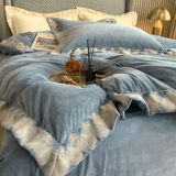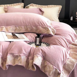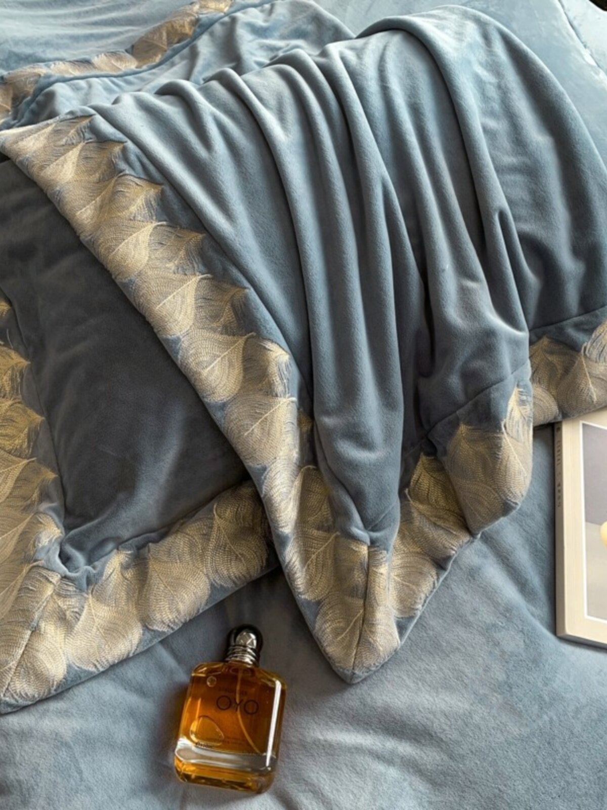 Демисезонный коралловый двусторонний удерживающий тепло комплект, пододеяльник, простыня, покрывало, 4 предмета, с вышивкой