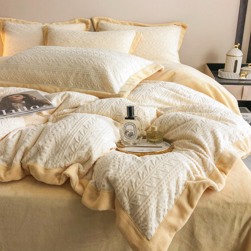 Элитный зимний комплект, фланелевый двусторонний пододеяльник, легкий роскошный стиль, увеличенная толщина, 4 предмета, постельные принадлежности
