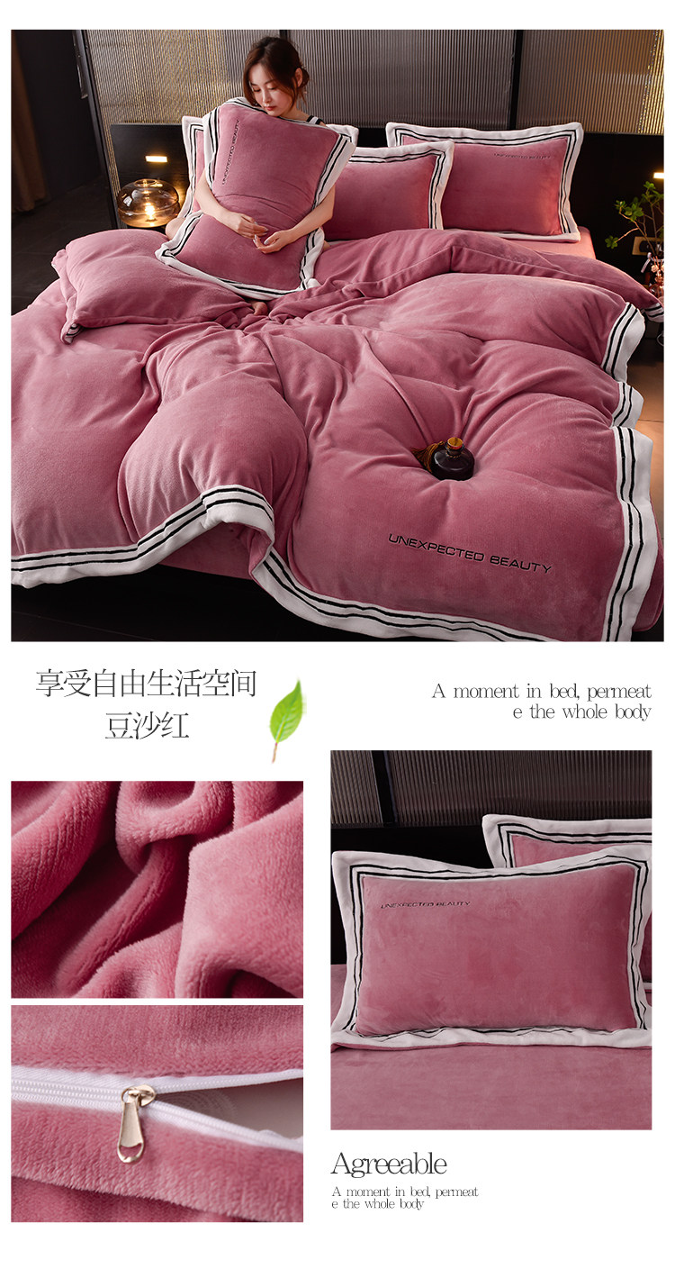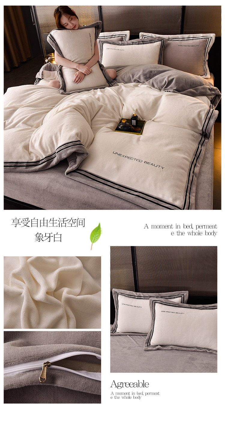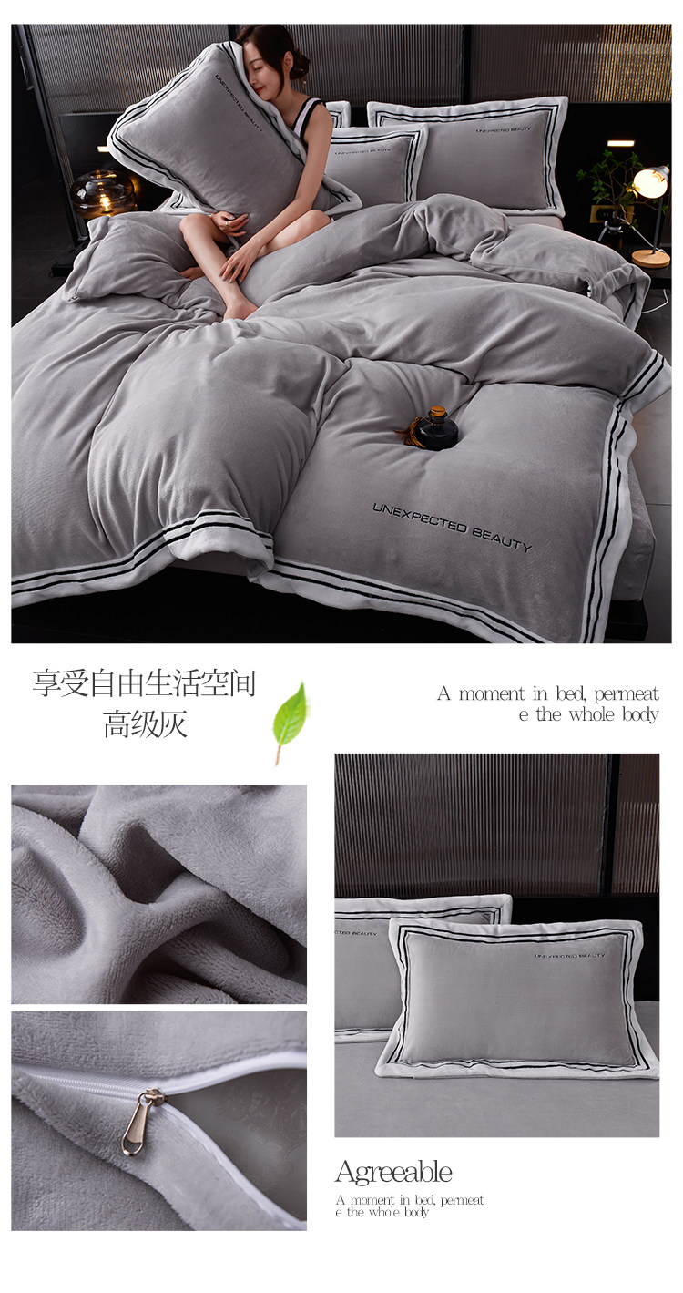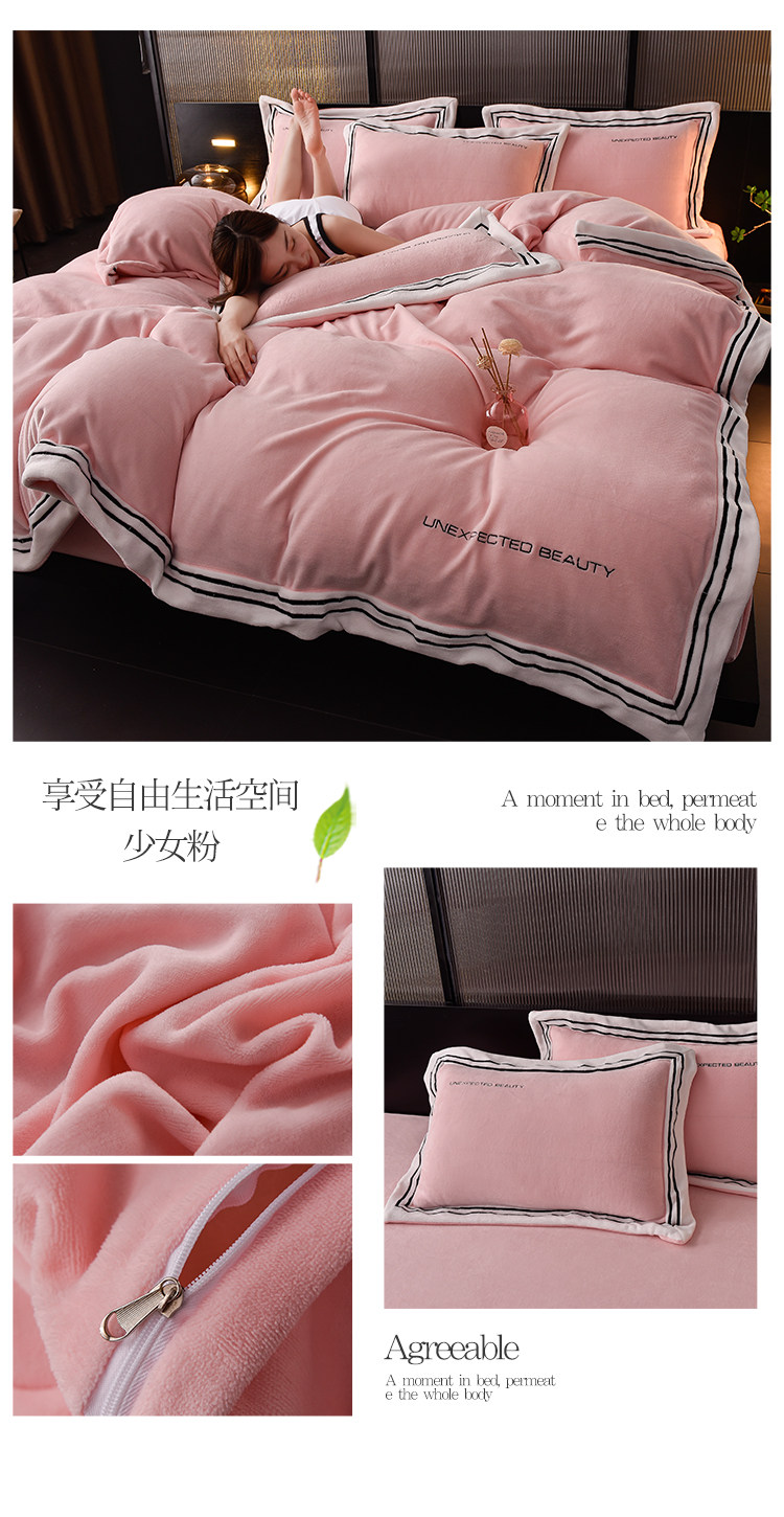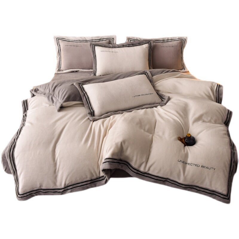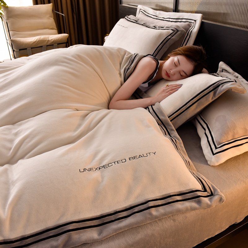 Демисезонный двусторонний комплект, коралловый удерживающий тепло пододеяльник, фланелевая простыня, 4 предмета, легкий роскошный стиль, постельные принадлежности