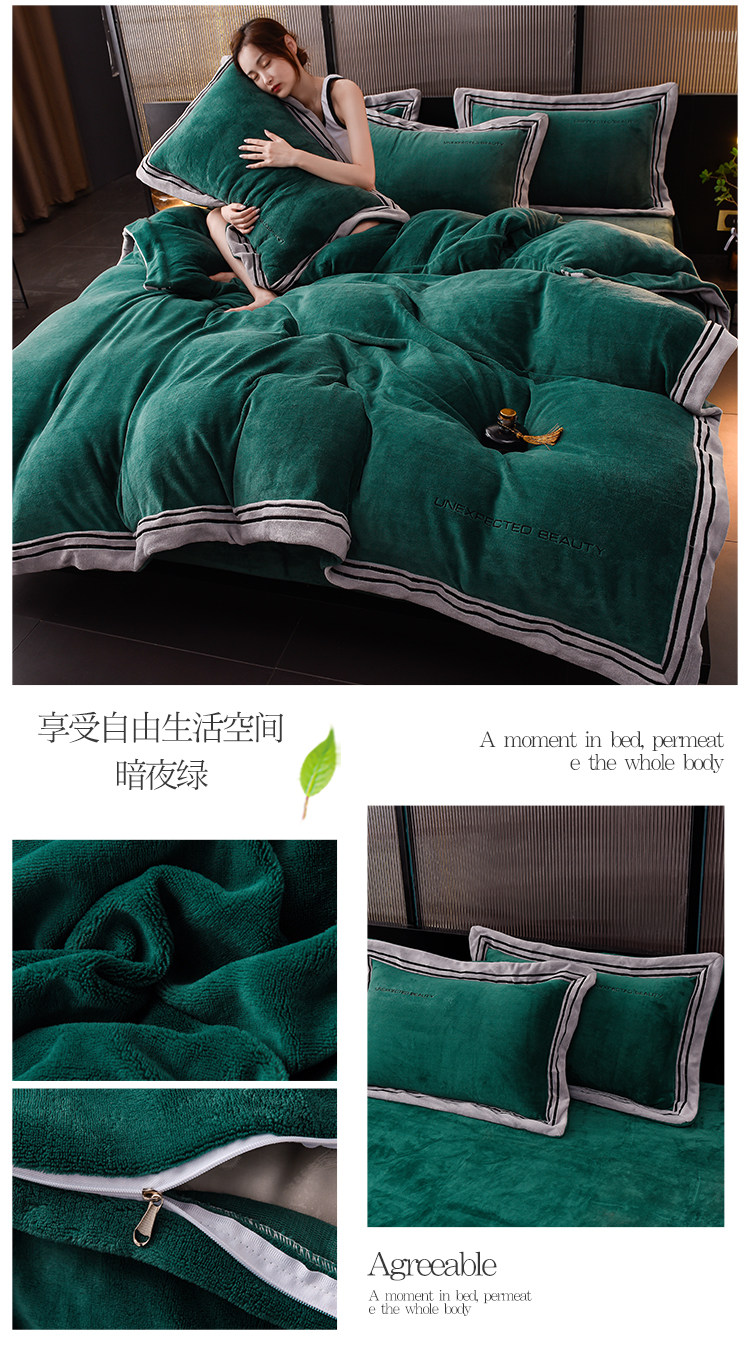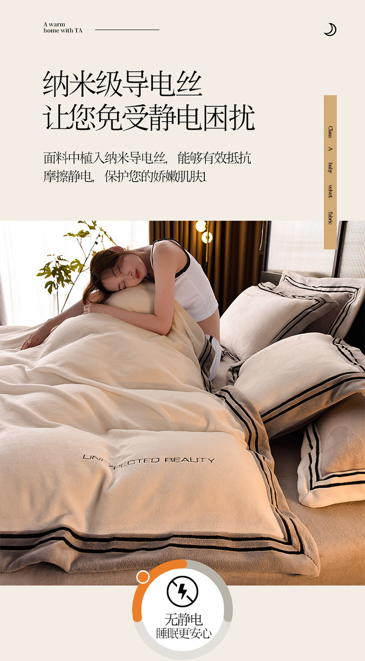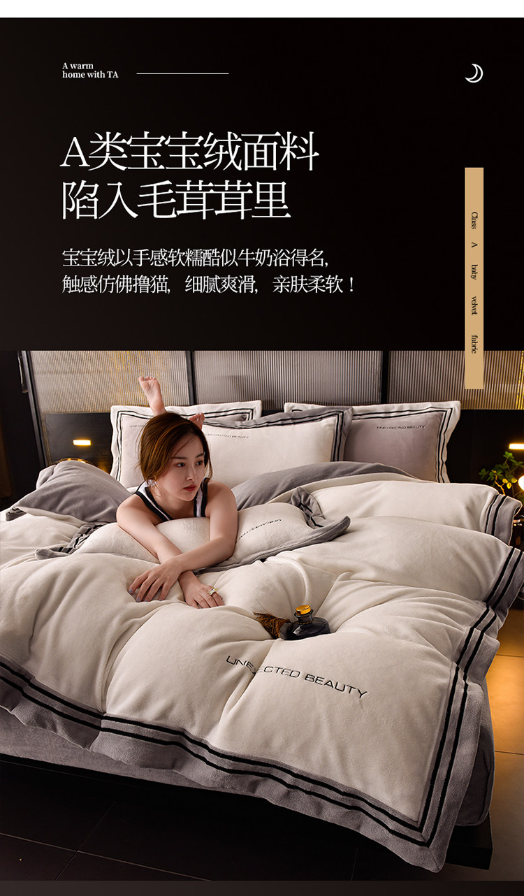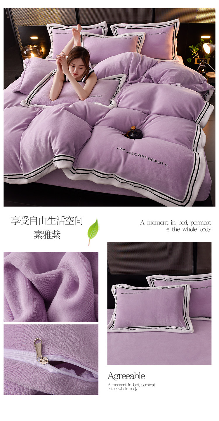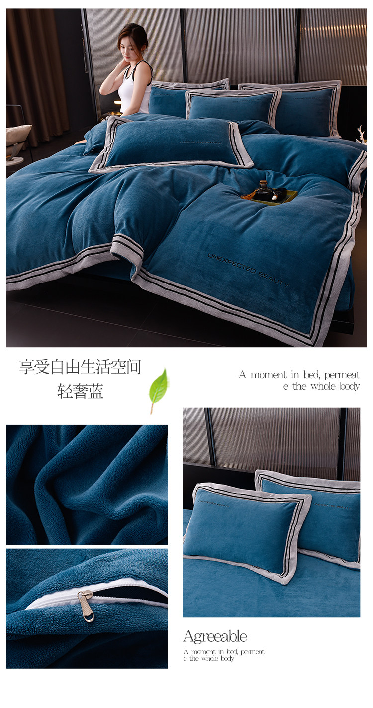 Демисезонный двусторонний комплект, коралловый удерживающий тепло пододеяльник, фланелевая простыня, 4 предмета, легкий роскошный стиль, постельные принадлежности