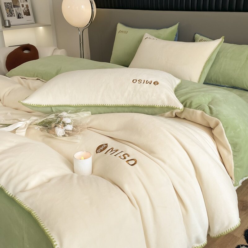 Удерживающие тепло бархатные джинсы с начесом, двусторонний фланелевый комплект, коралловая бархатная простыня, пододеяльник, 4 предмета, постельные принадлежности