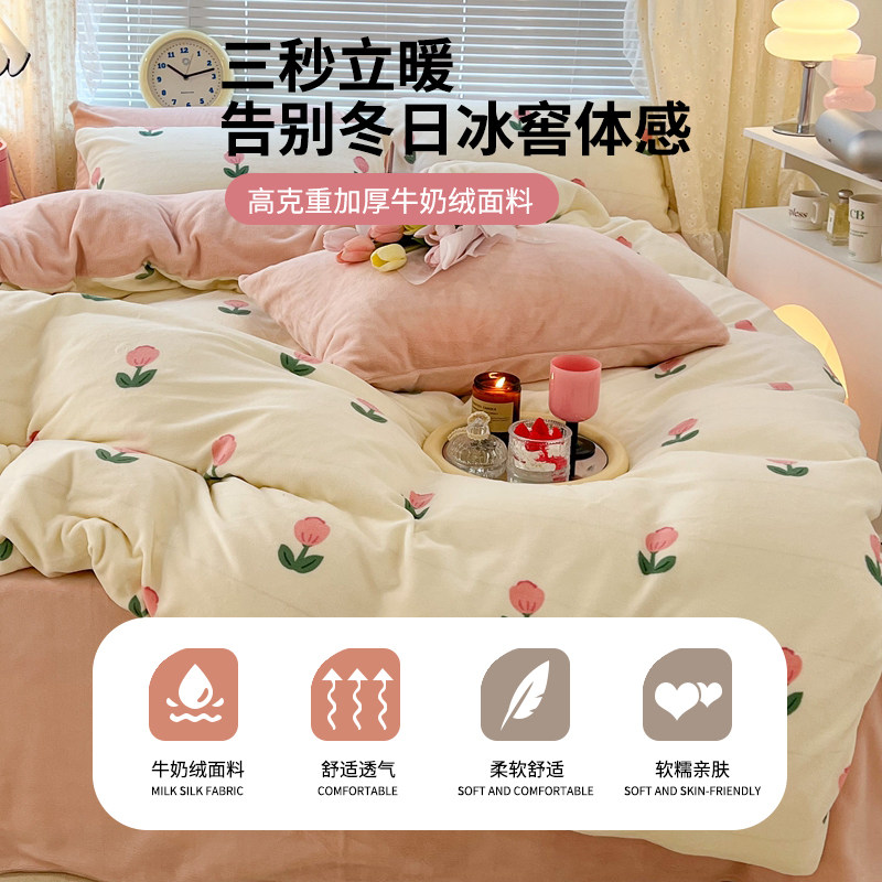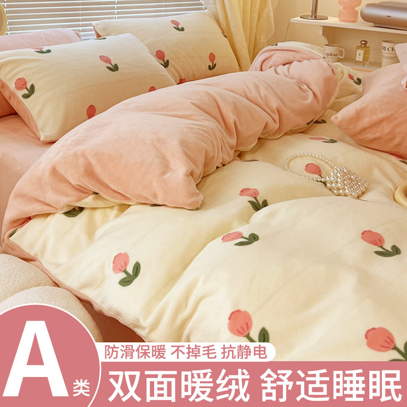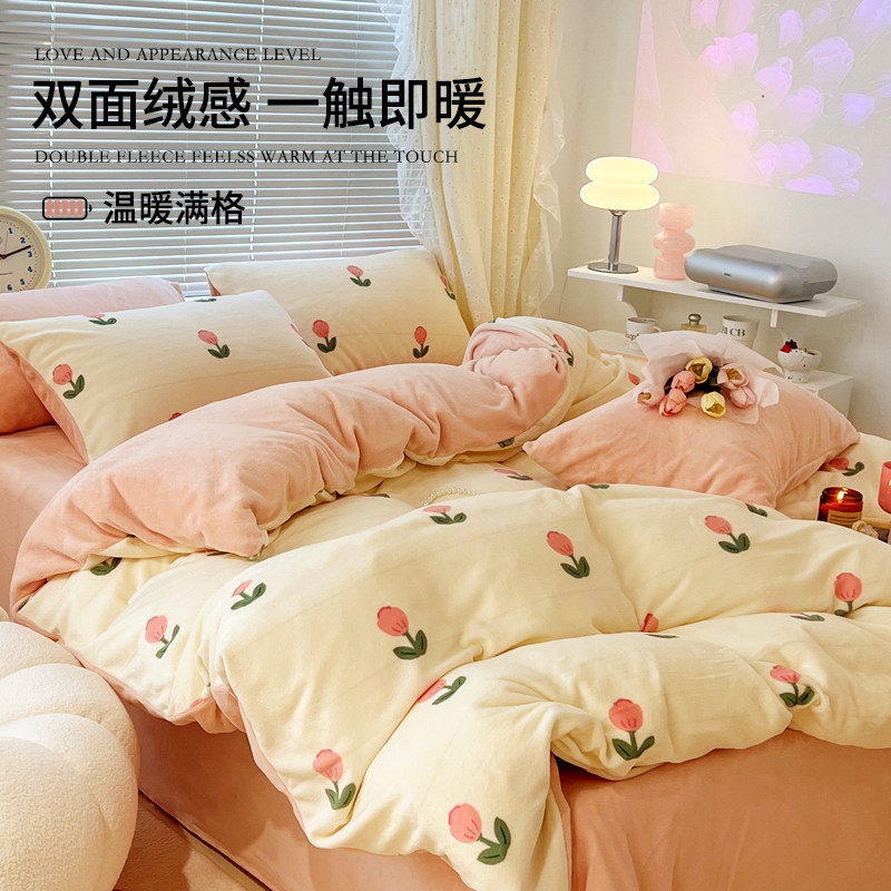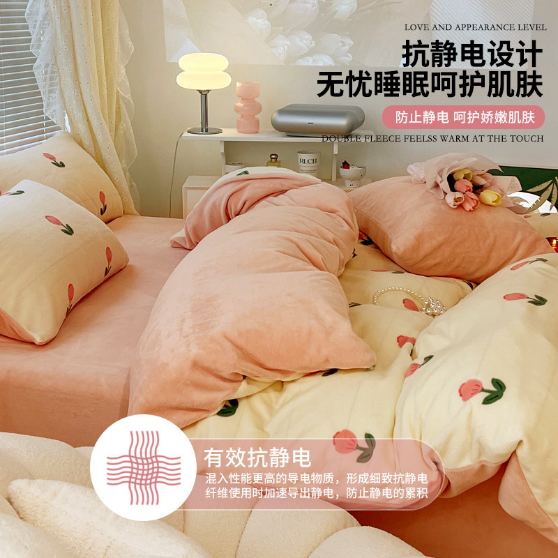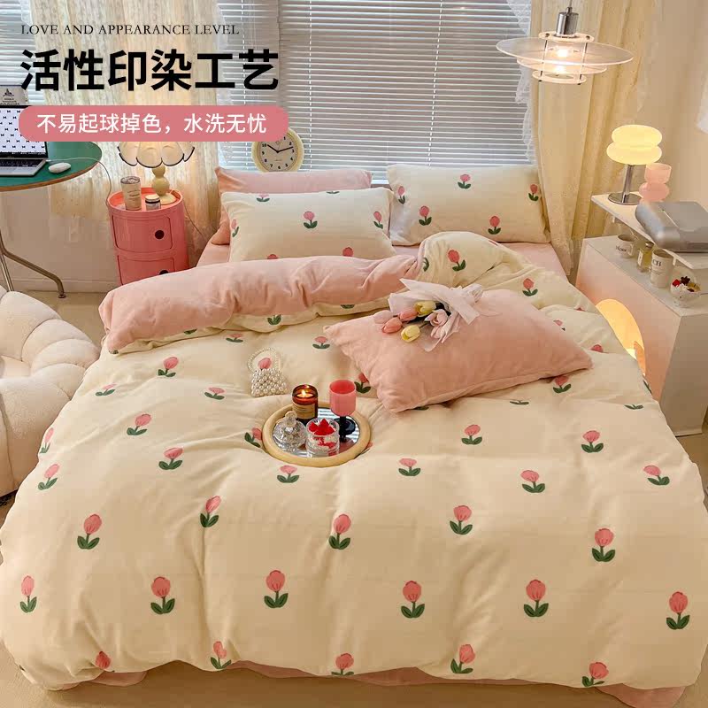 Зимний коралловый комплект, простыня, флисовый двусторонний фланелевый пододеяльник, 4 предмета, 3 предмета