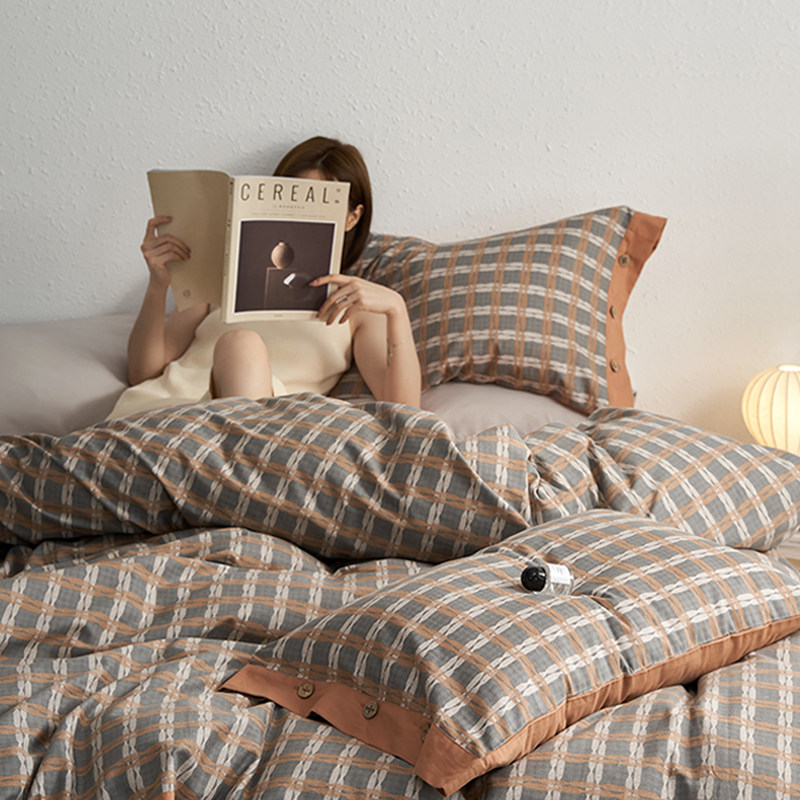 Ретро хлопковый комплект, хлопковая простыня, японский пододеяльник, демисезонное покрывало, увеличенная толщина, 4 предмета, простой и элегантный дизайн