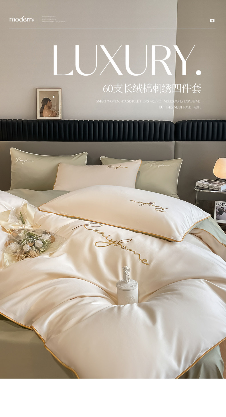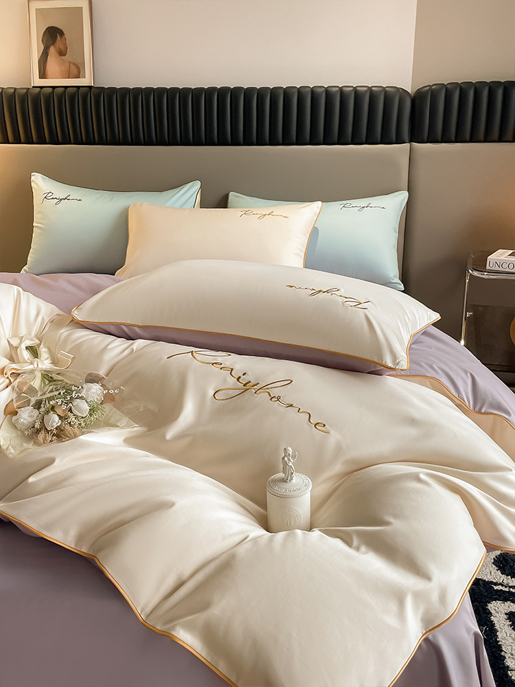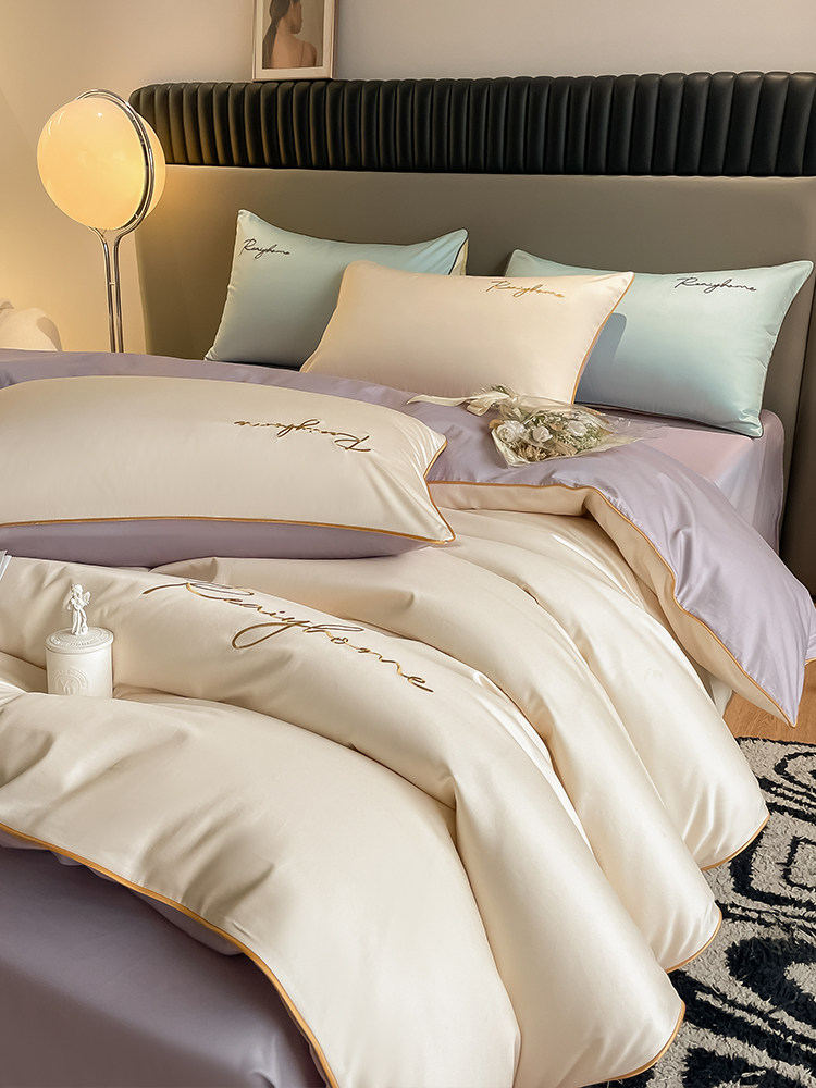 Хлопковый комплект, пододеяльник, простыня, 60 шт, 4 предмета, легкий роскошный стиль, постельные принадлежности, изысканный стиль, простой и элегантный дизайн