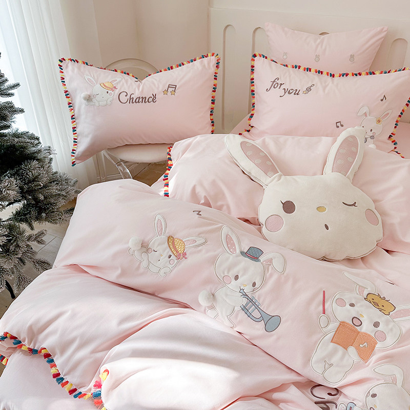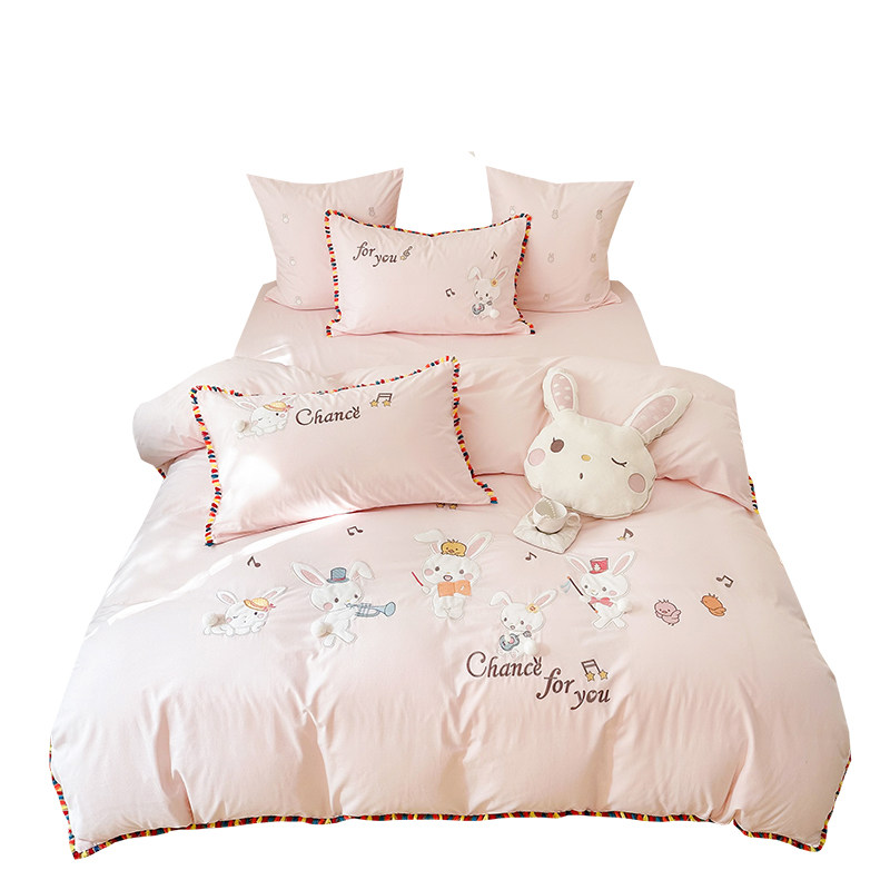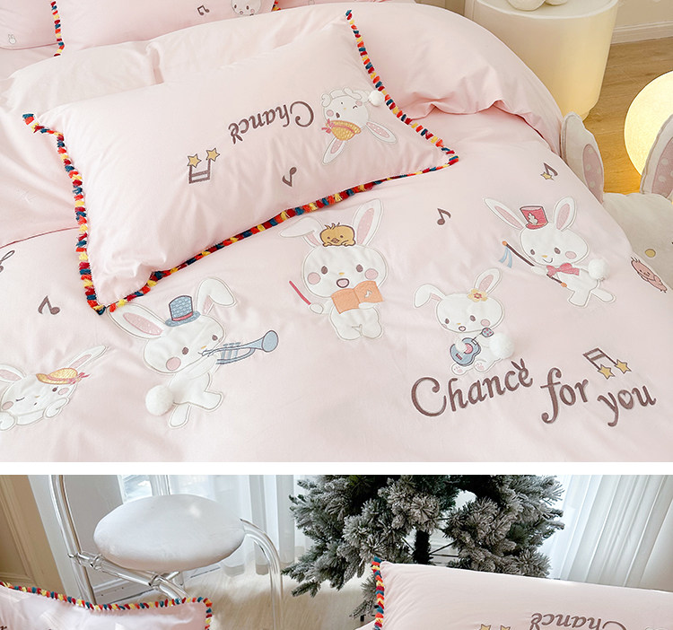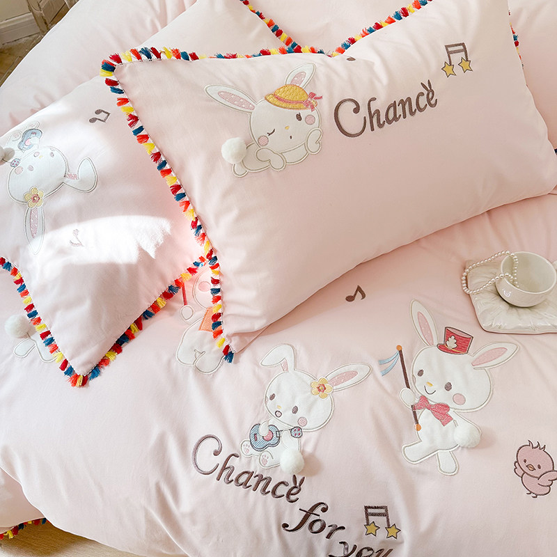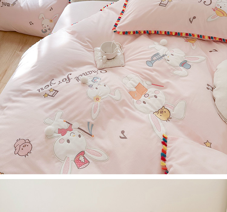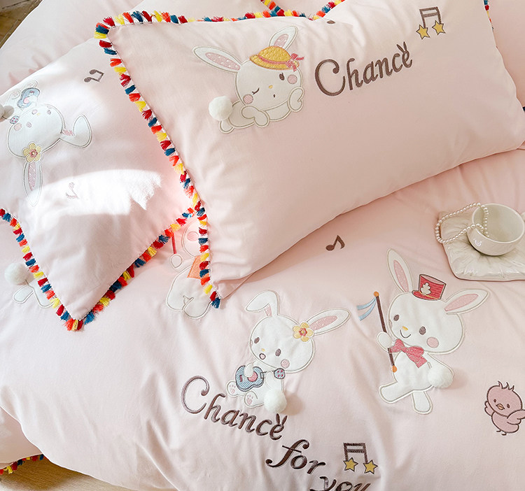 Зимний хлопковый детский комплект, мультяшный пододеяльник, кролик, 4 предмета, увеличенная толщина, 3 предмета, с вышивкой, постельные принадлежности
