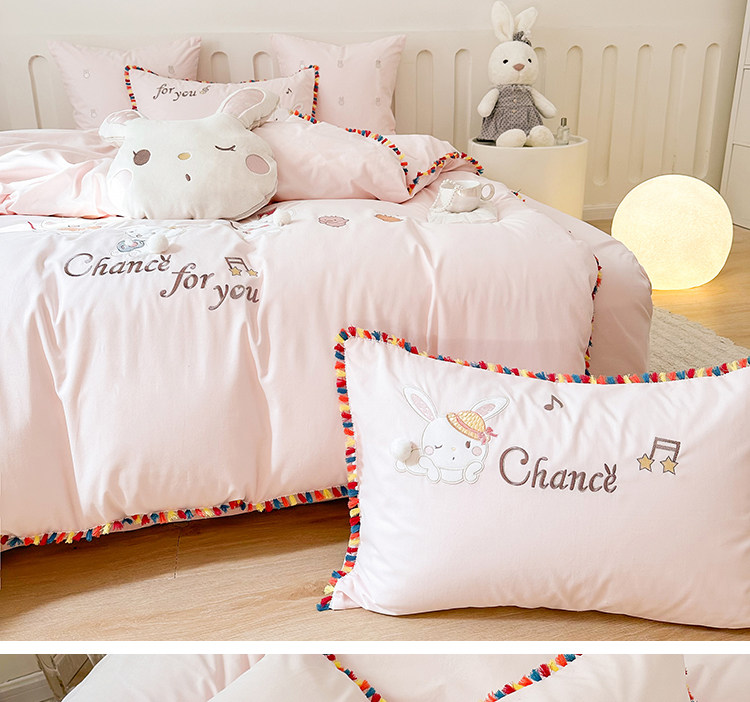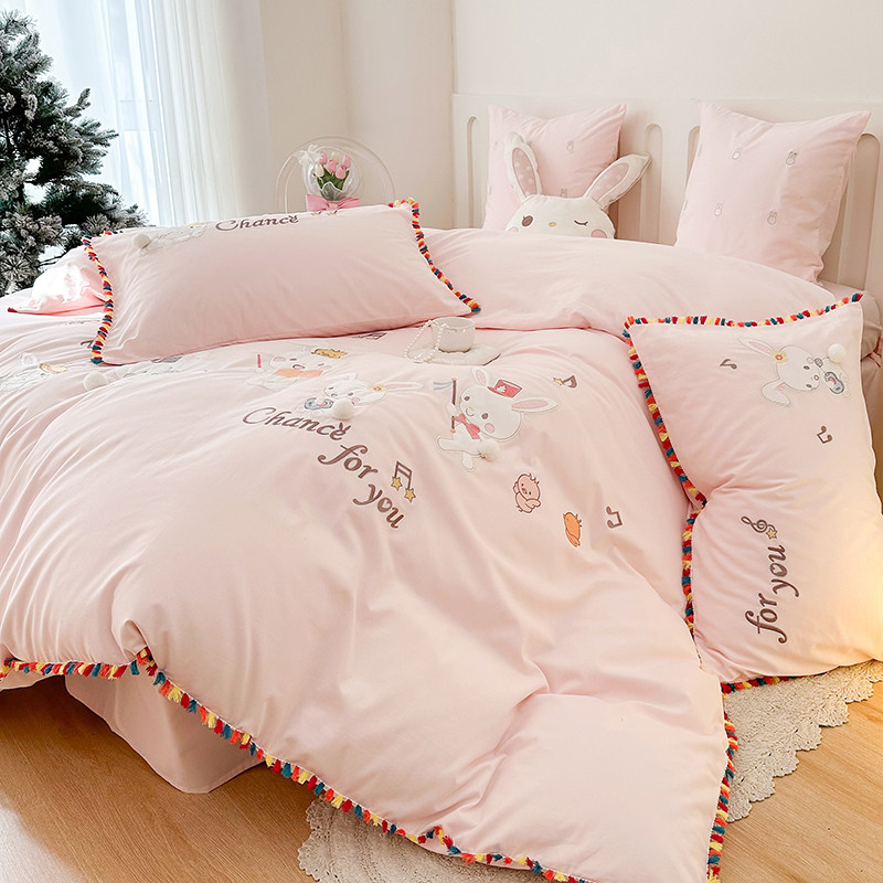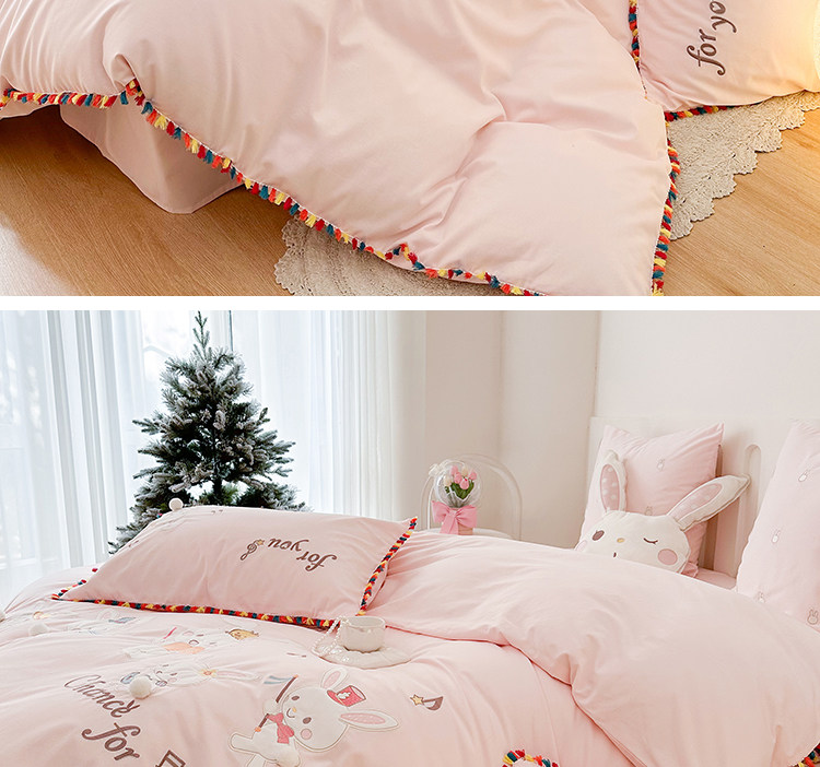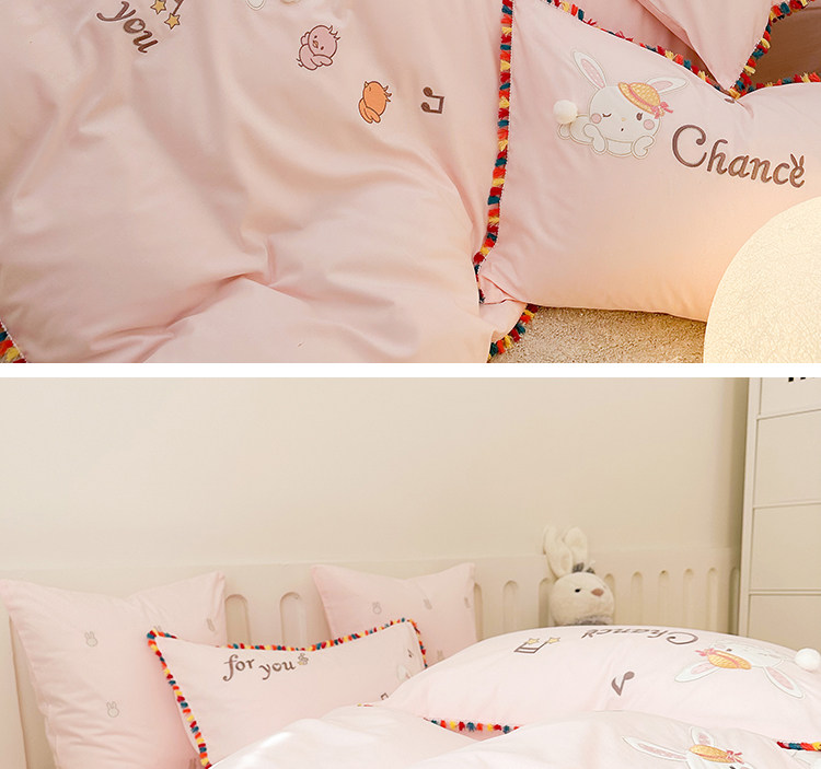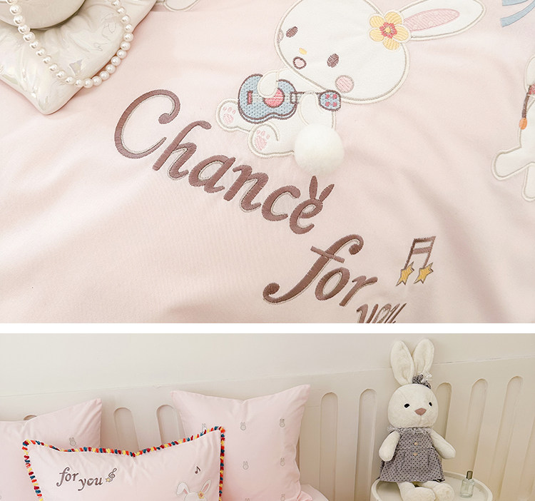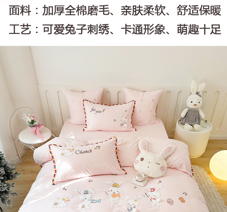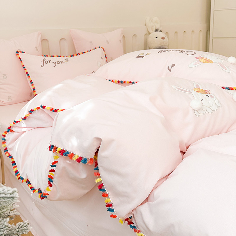 Зимний хлопковый детский комплект, мультяшный пододеяльник, кролик, 4 предмета, увеличенная толщина, 3 предмета, с вышивкой, постельные принадлежности
