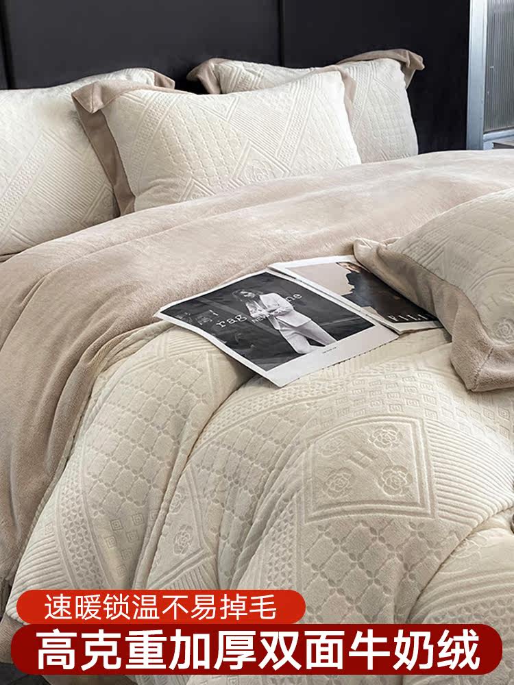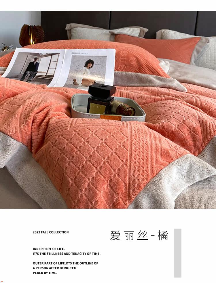 Демисезонный коралловый комплект, антистатическое покрывало, легкий роскошный стиль, 4 предмета