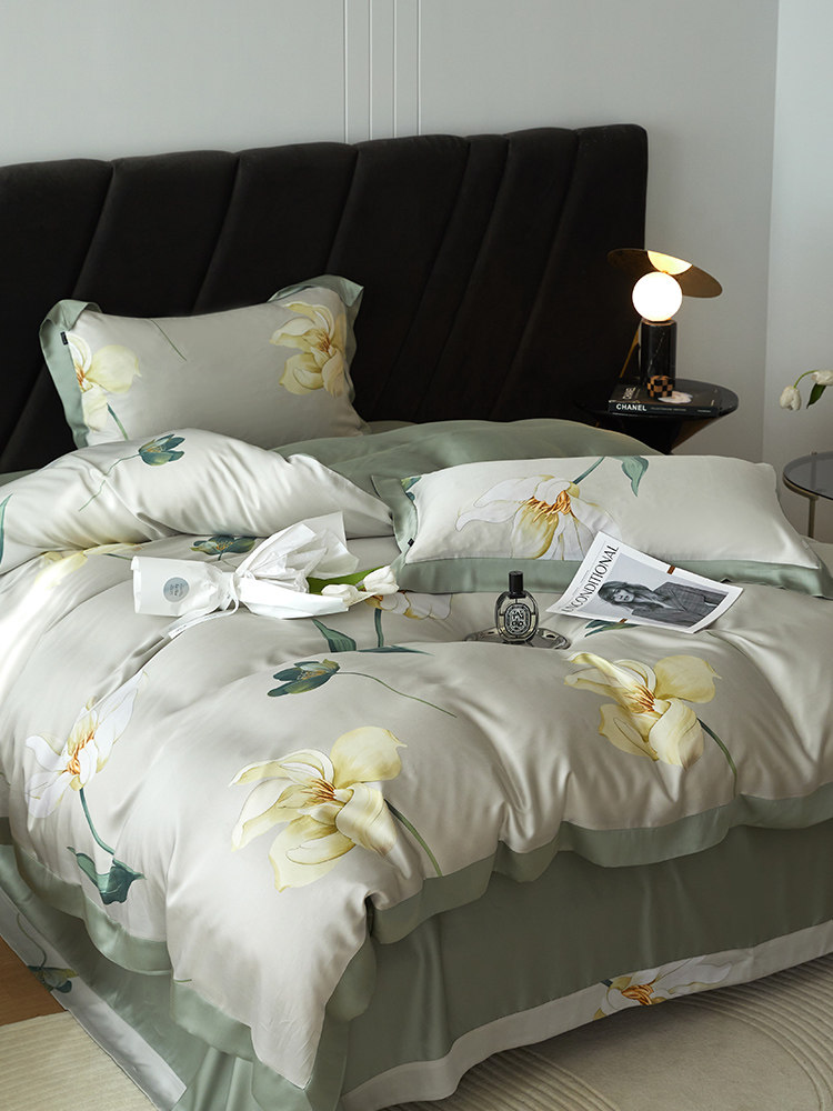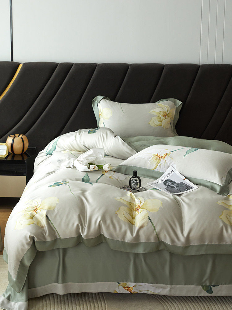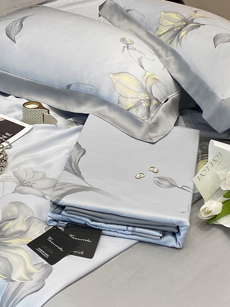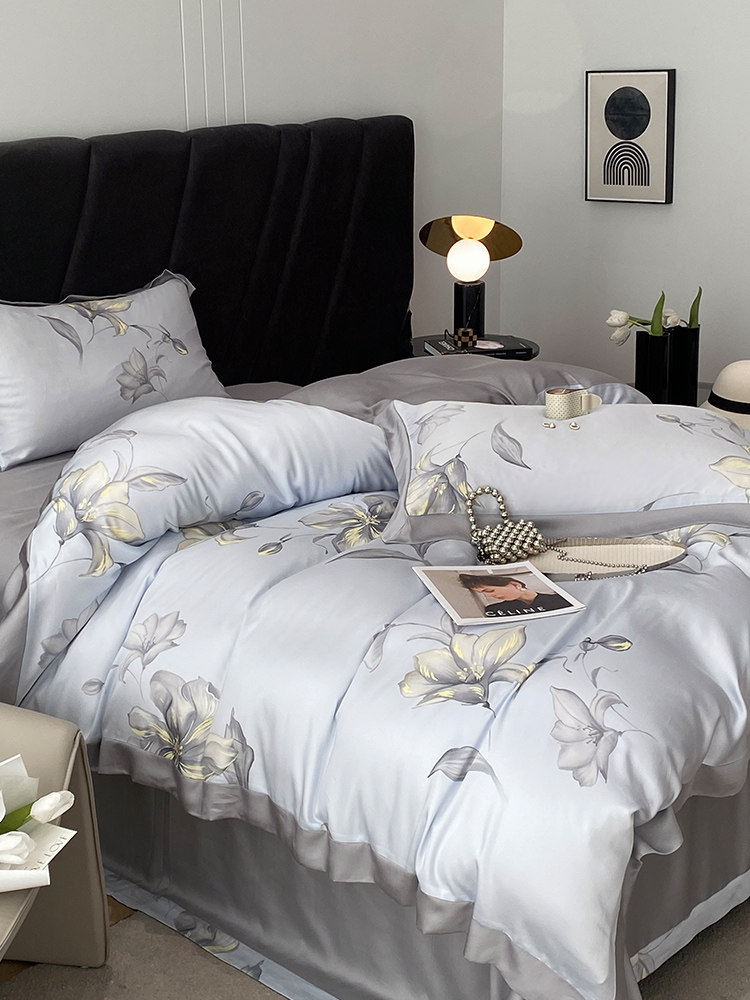 Импортный комплект, шелковистая кровать, покрывало, простой и элегантный дизайн, изысканный стиль, 4 предмета