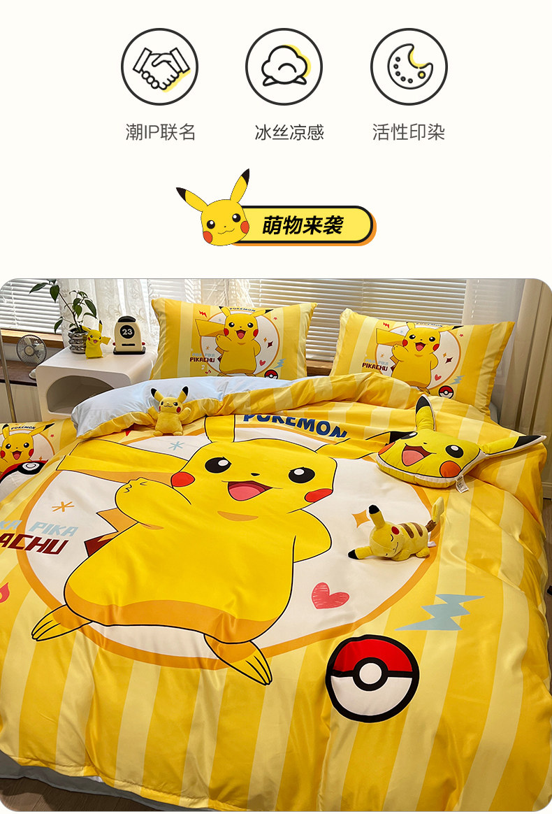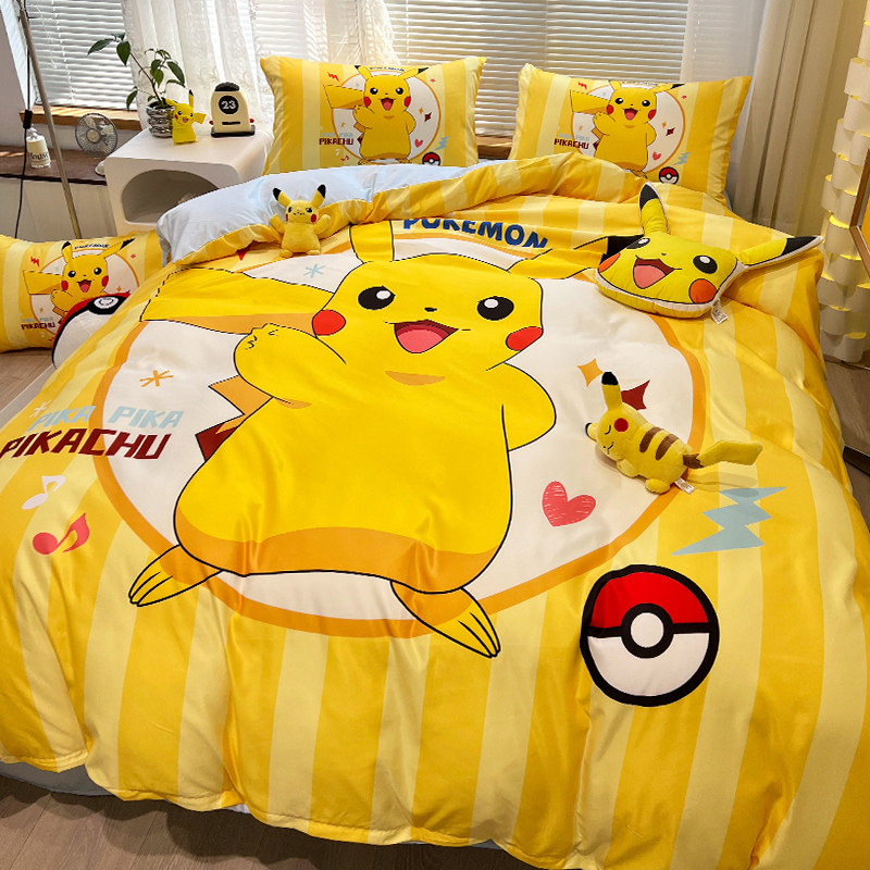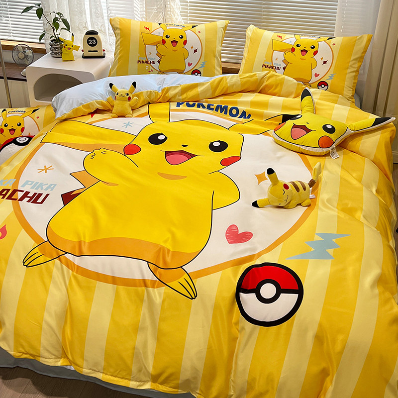 Шелковый комплект, пододеяльник, шелковая мультяшная брендовая простыня для школьников, 4 предмета, 3 предмета