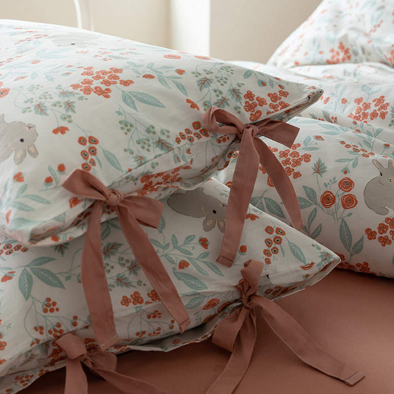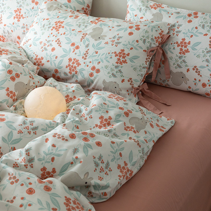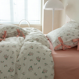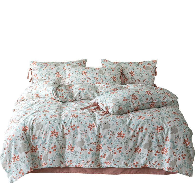 Хлопковый комплект, простыня, пододеяльник для школьников и студентов с бантиком, 4 предмета, постельные принадлежности, цветочный принт