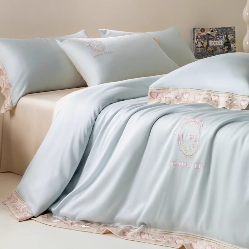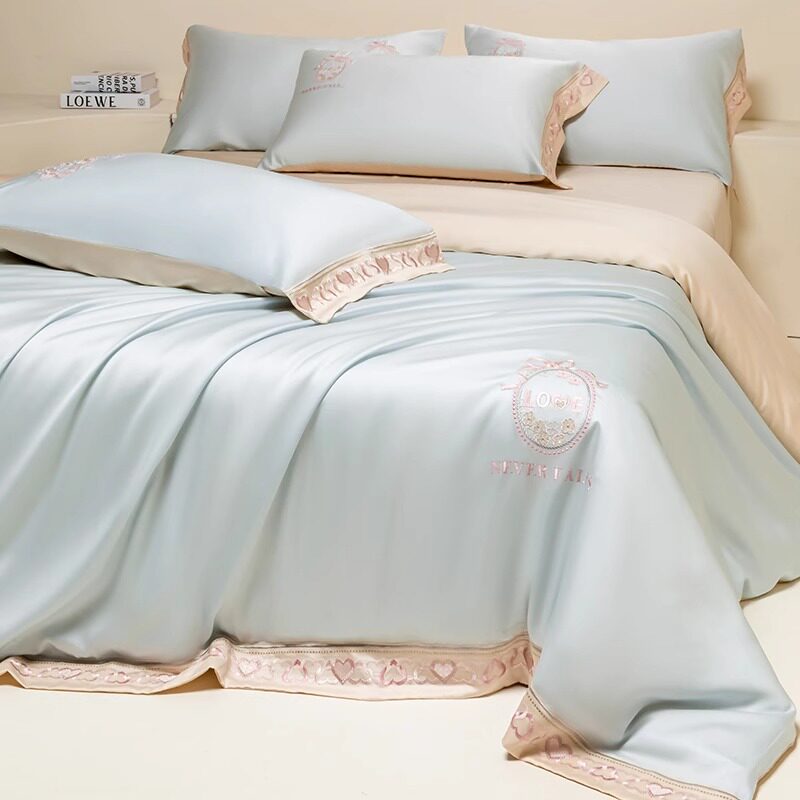 Шелковый летний комплект, простыня, шелковистый пододеяльник, кровать, 100 шт, 4 предмета, изысканный стиль, постельные принадлежности