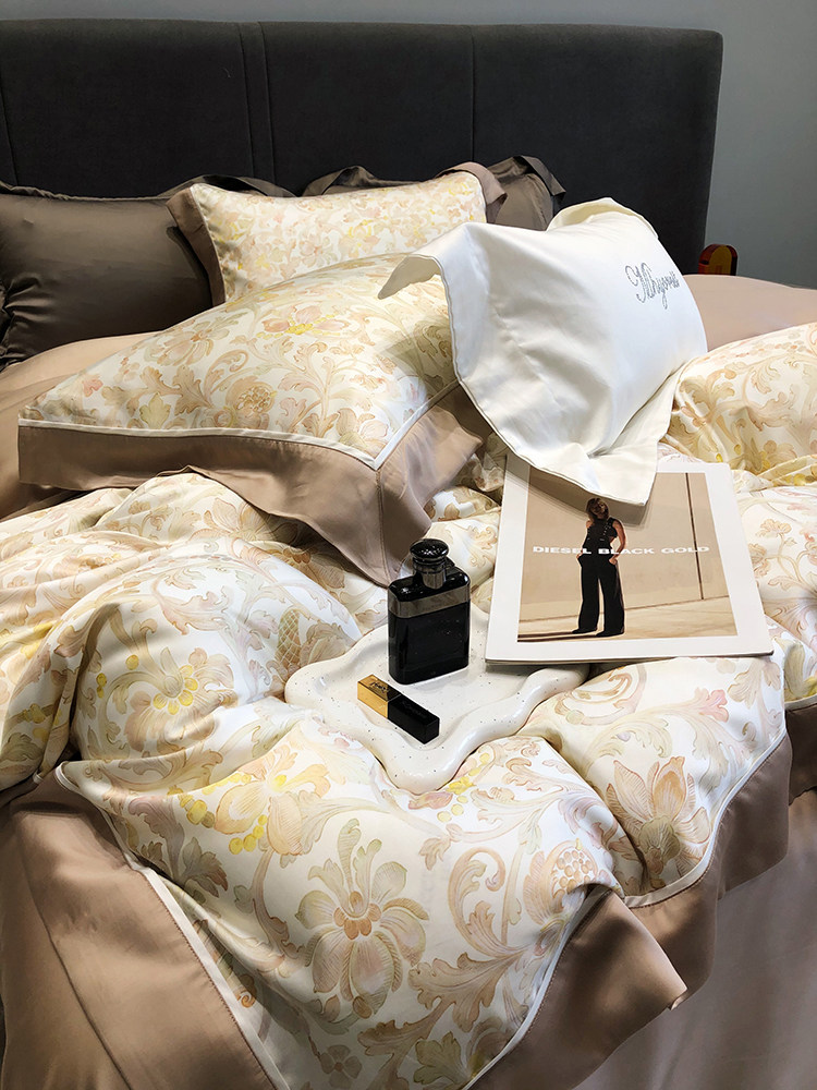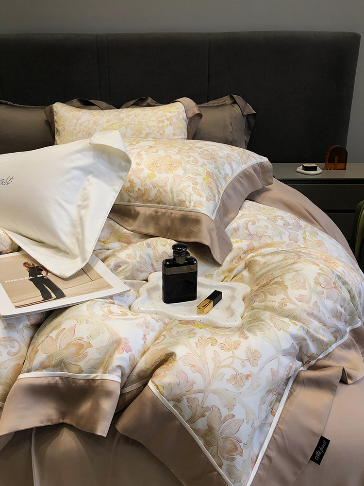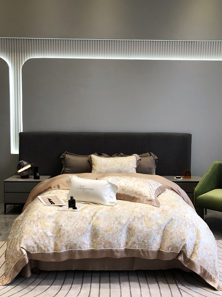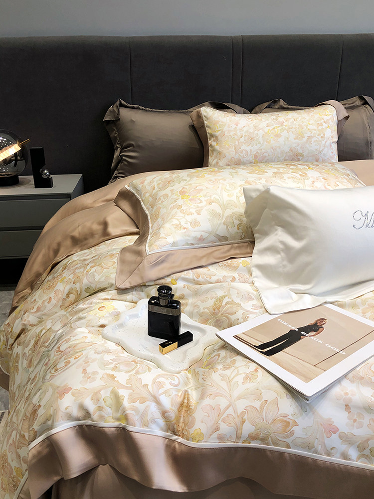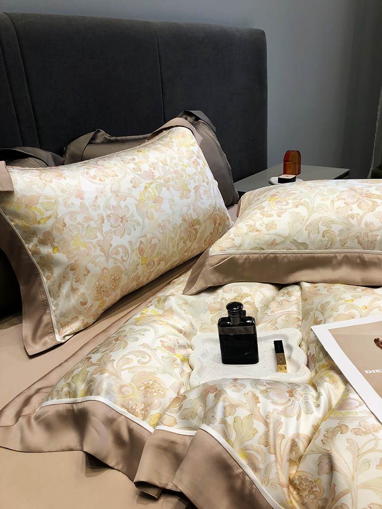 Летний шелковый комплект, простыня, пододеяльник, шелковистая кровать, покрывало, 4 предмета, легкий роскошный стиль, изысканный стиль
