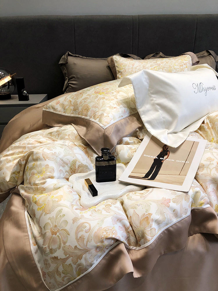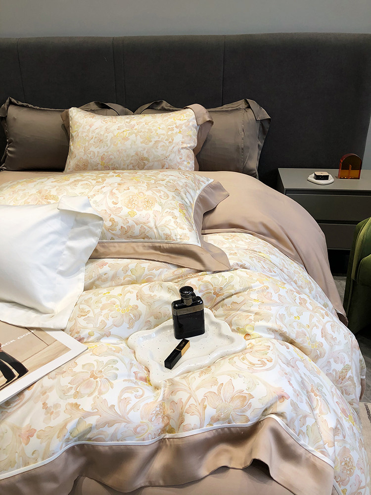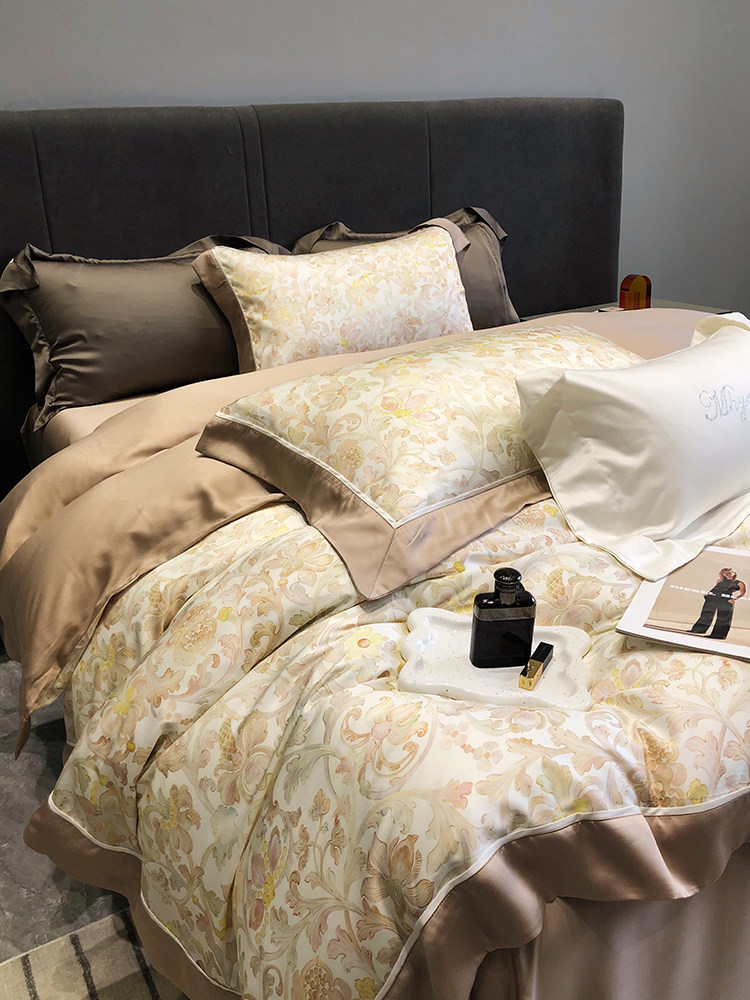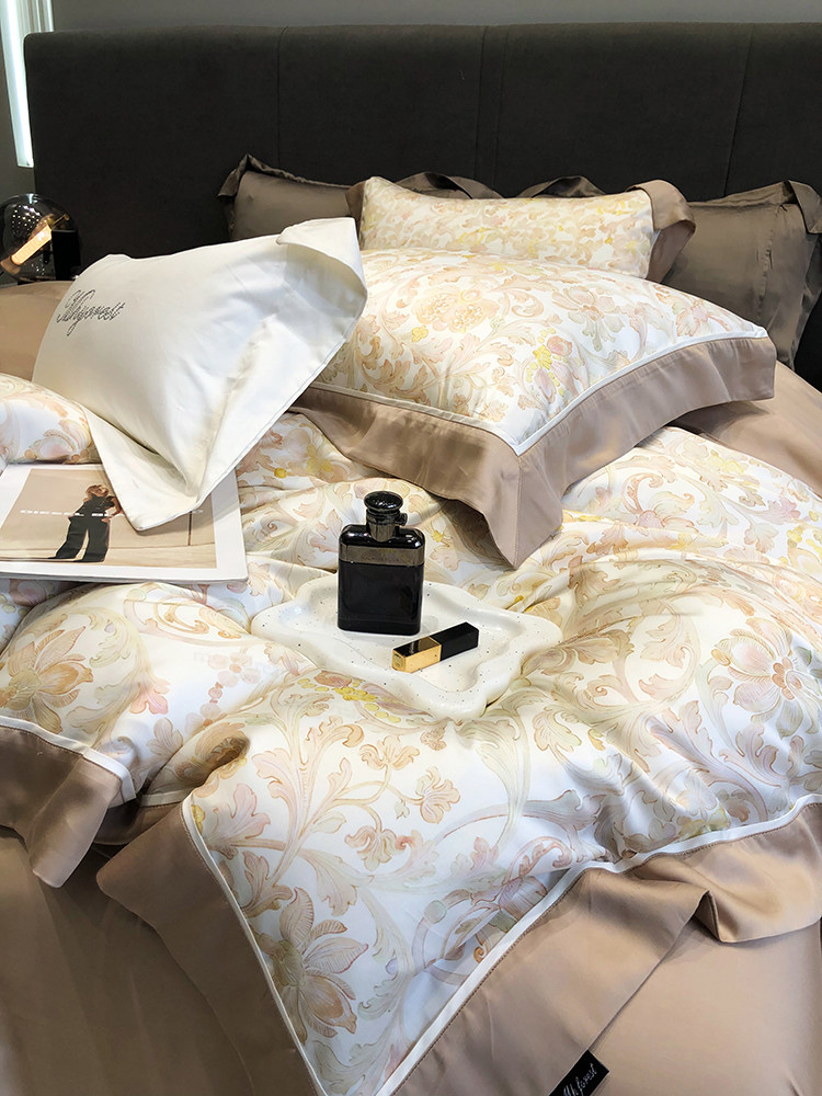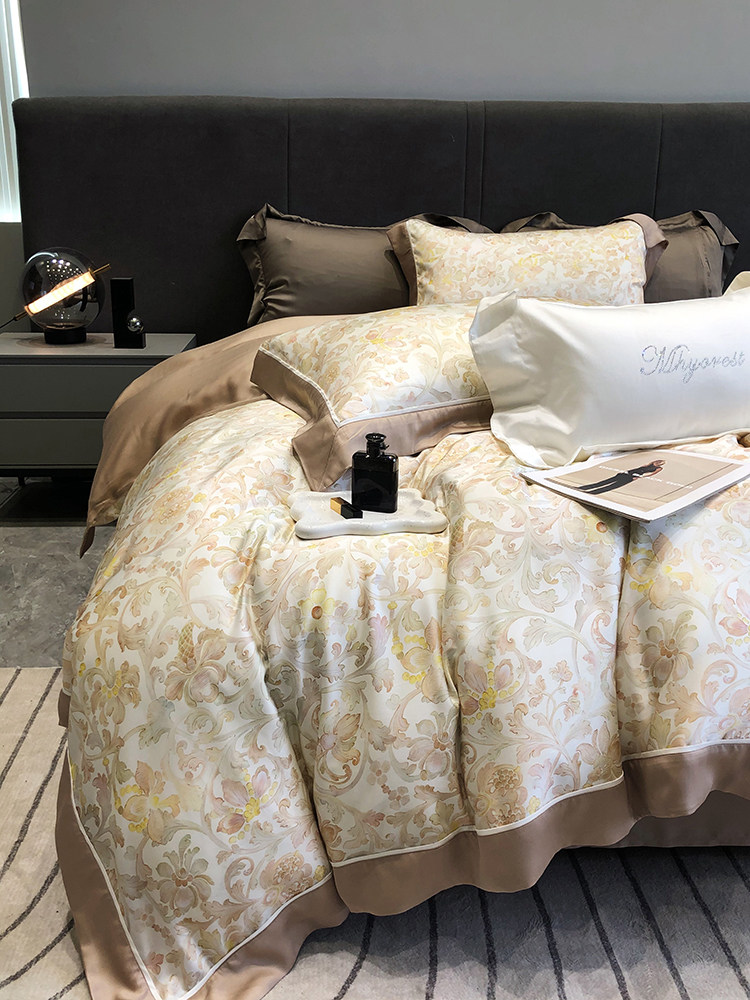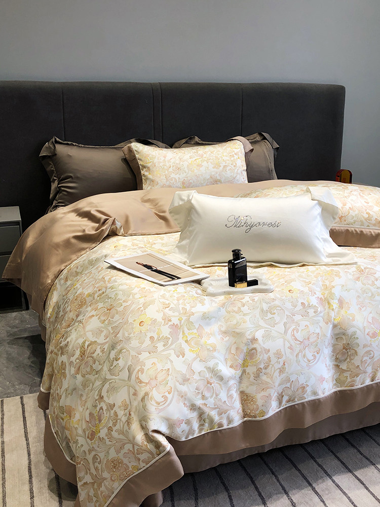Летний шелковый комплект, простыня, пододеяльник, шелковистая кровать, покрывало, 4 предмета, легкий роскошный стиль, изысканный стиль