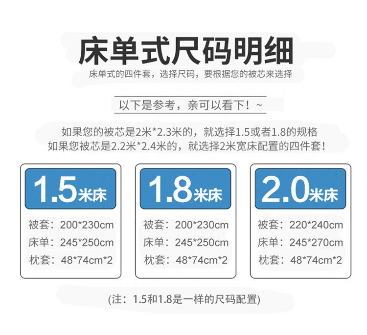 | Ширина кровати: | Простыня, пододеяльник, 1.5м, 200×230см, Простыня, пододеяльник, 1.8м, 200×230см, Простыня, пододеяльник, 2.0м, 220×240см |