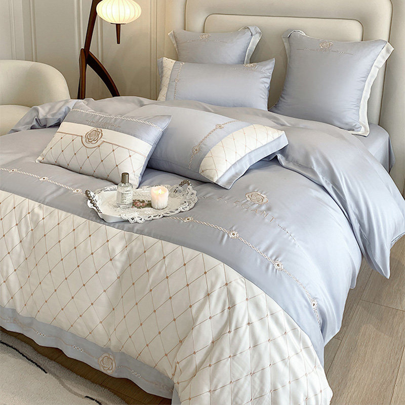 Горный чай, летний комплект, двусторонний шелковый шелковистый пододеяльник, простыня, кровать, покрывало, легкий роскошный стиль, 4 предмета