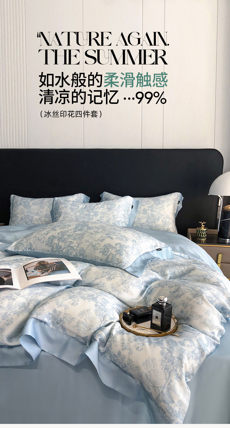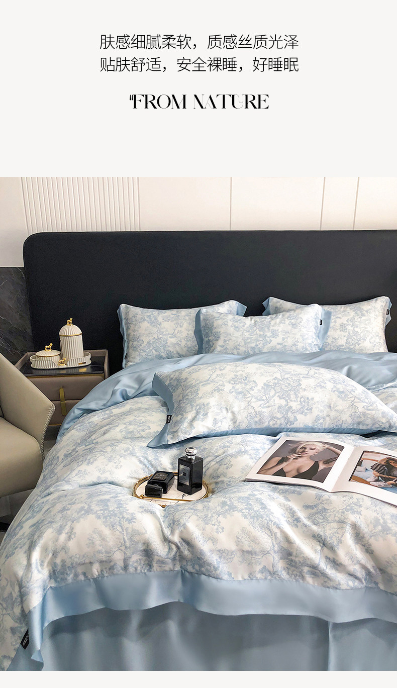Летний шелковый комплект, простыня, пододеяльник, шелковистая шелковая кровать, 4 предмета, изысканный стиль, постельные принадлежности