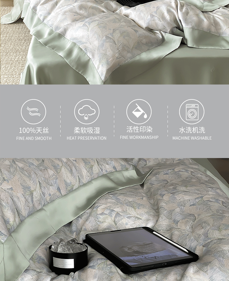 Летний комплект, шелковая шелковистая простыня, пододеяльник, покрывало, легкий роскошный стиль, 100 шт, 4 предмета