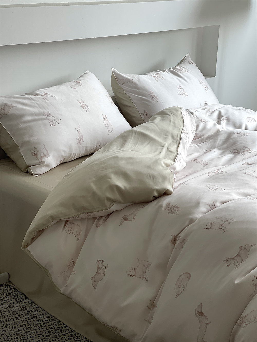 Пододеяльник выполнен в версии АВ, а цвет версии Б соответствует цвету простыни.