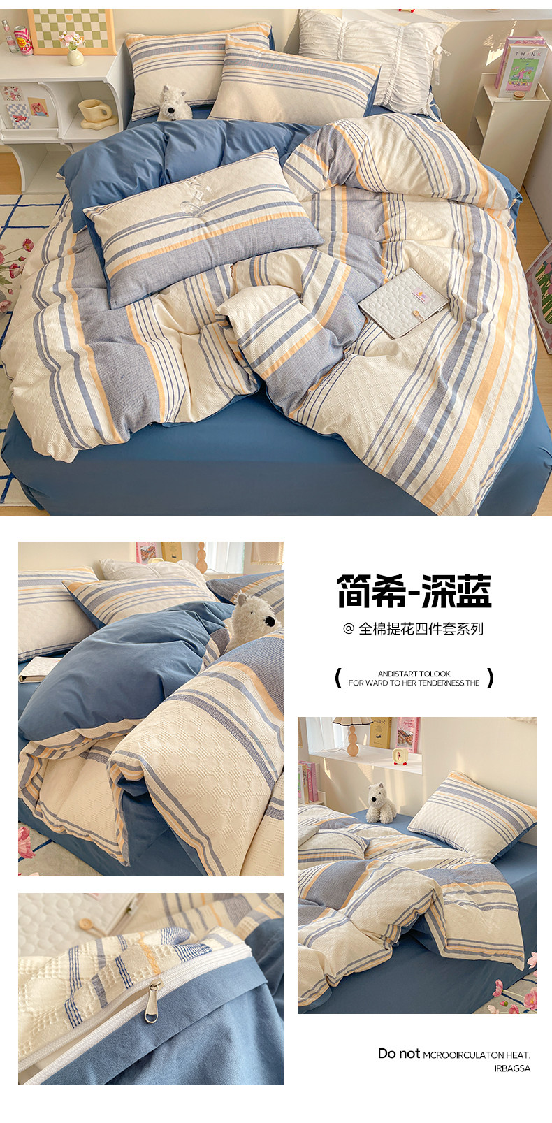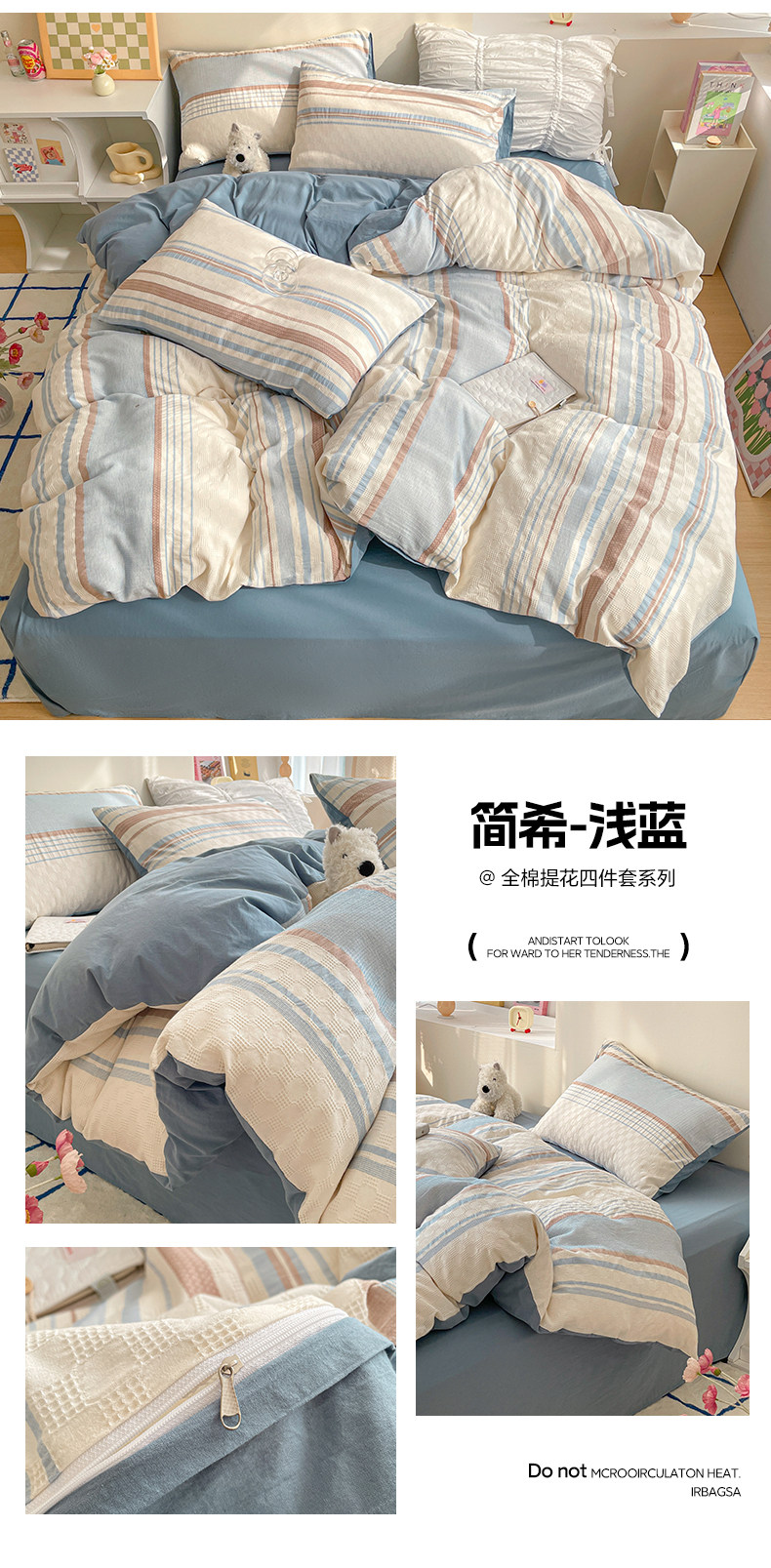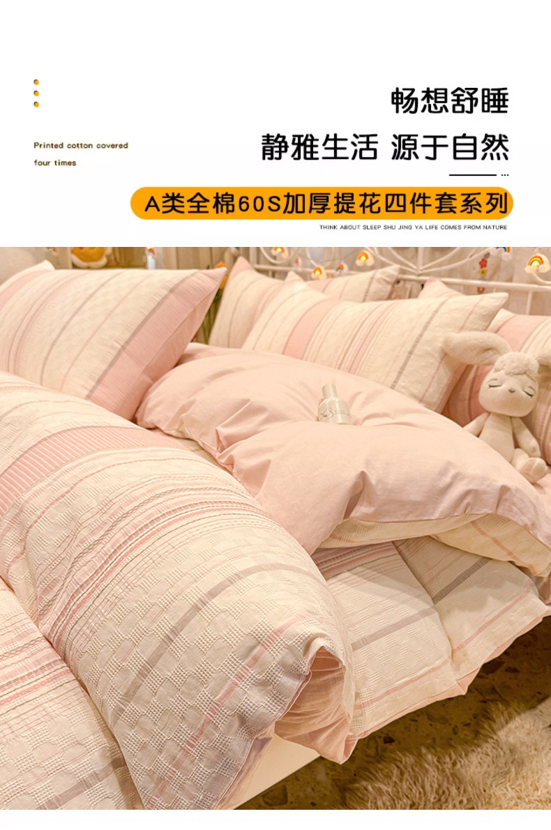 Хлопковый комплект, пододеяльник, простыня, 60 шт, 4 предмета, легкий роскошный стиль, простой и элегантный дизайн, 3 предмета, постельные принадлежности