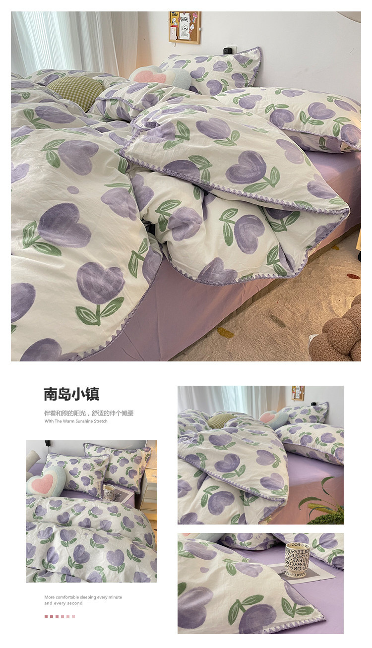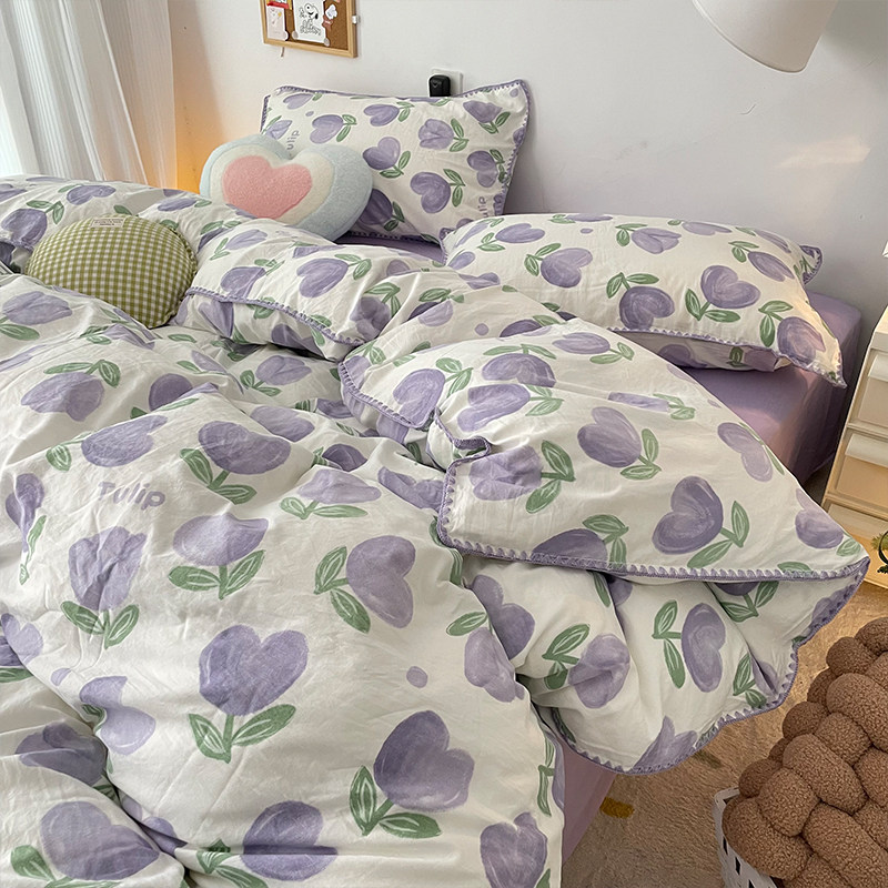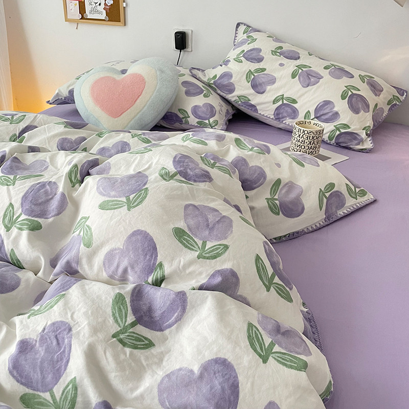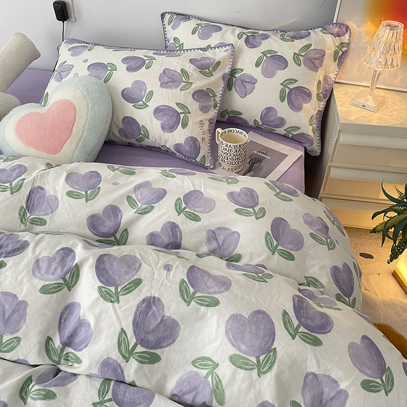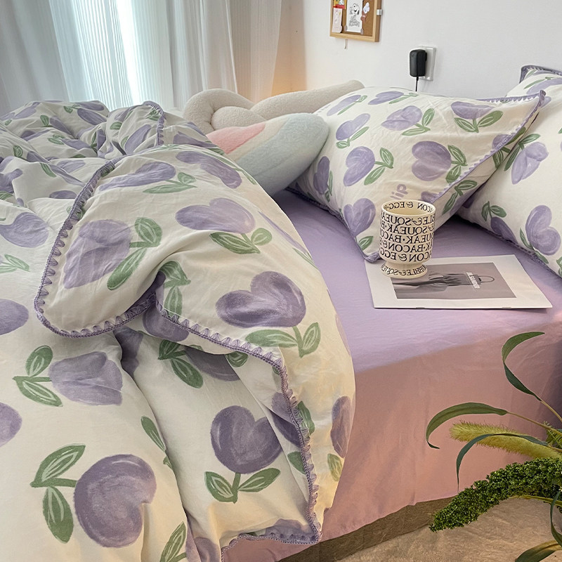 Брендовый сиреневый двухэтажный пододеяльник, комплект, простыня, 4 предмета, простой и элегантный дизайн, 3 предмета