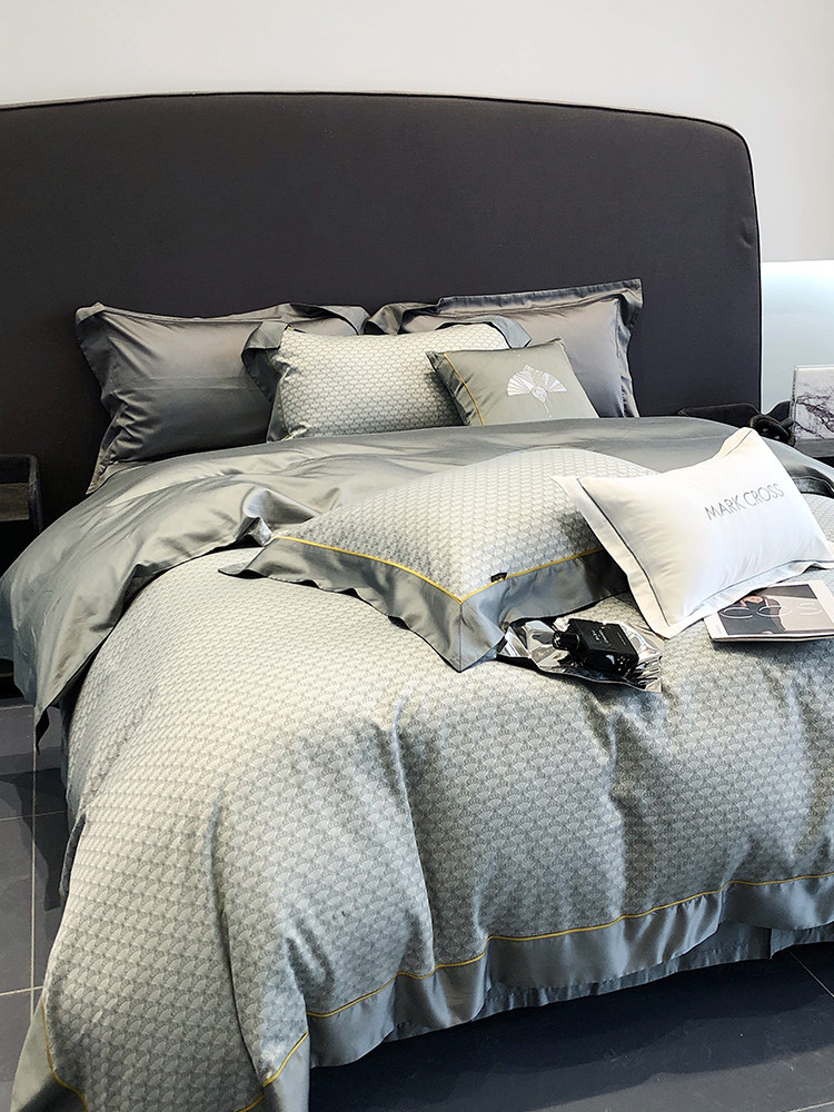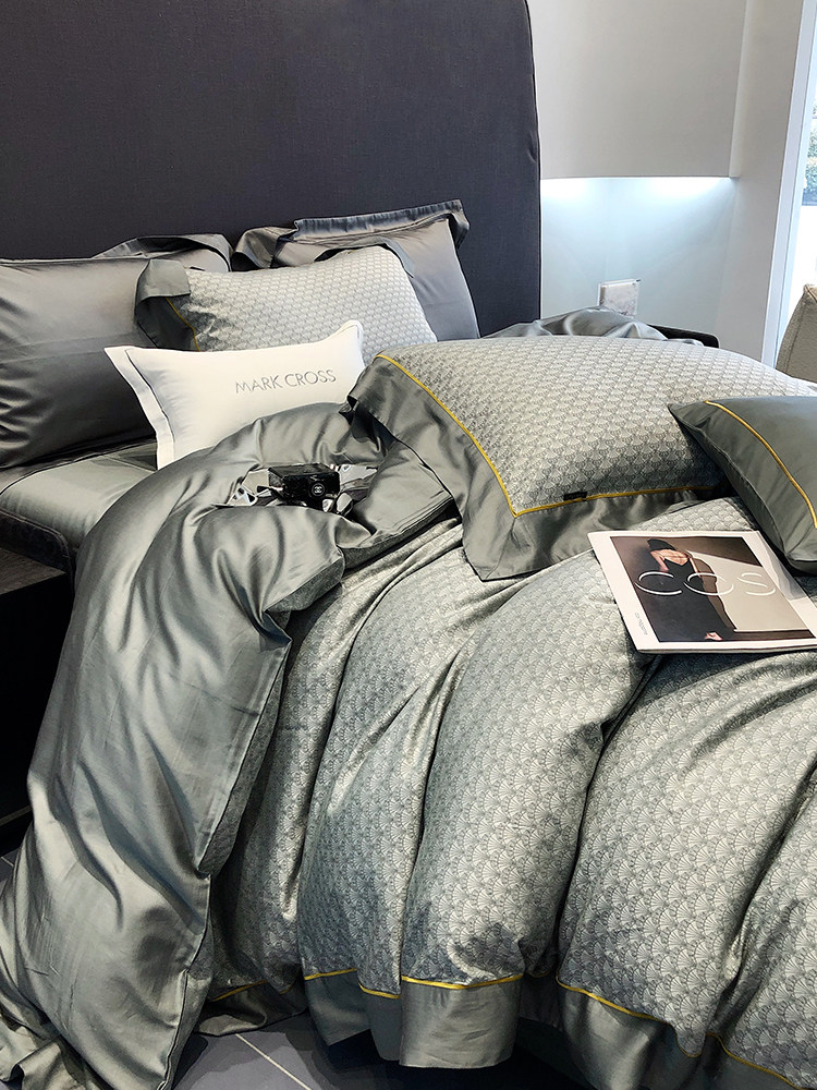 Мужской комплект, летний шелковый пододеяльник, простыня, легкий роскошный стиль, изысканный стиль, 4 предмета