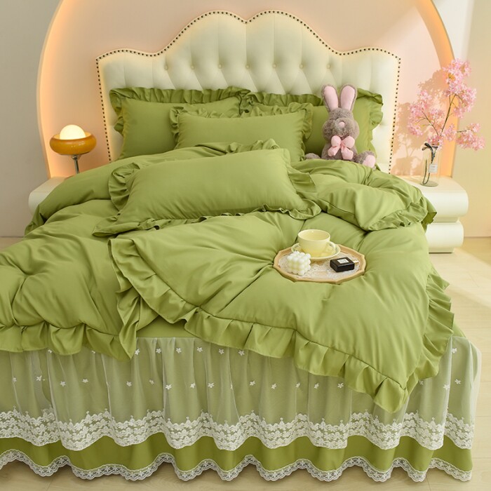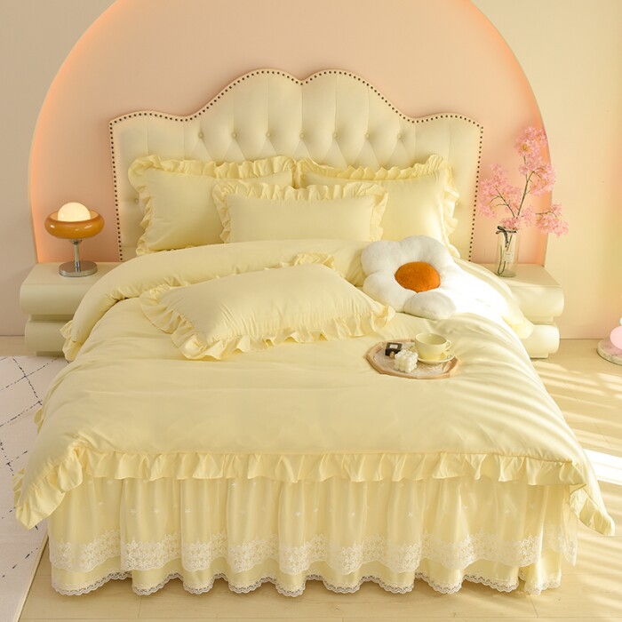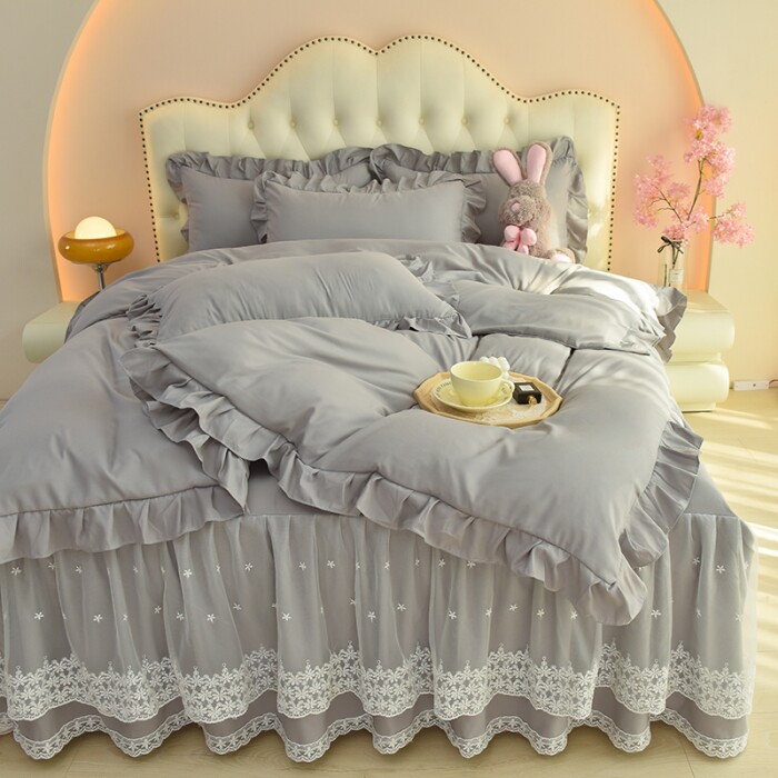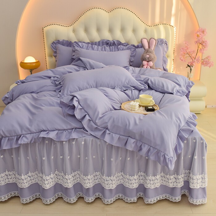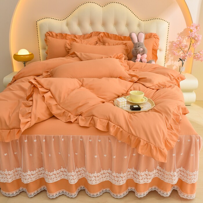 Хлопковая постельная юбка Roca, комплект из четырех предметов, кружевное нескользящее постельное белье, кружевное пододеяльник в стиле принцессы, всесезонные принадлежности для сна обнаженной