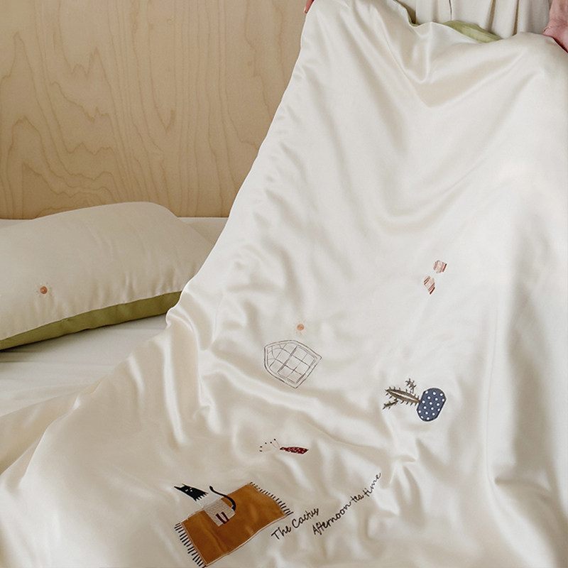 Мультяшный шелковый комплект, пододеяльник, летняя простыня, покрывало, с вышивкой, 100 шт, 4 предмета