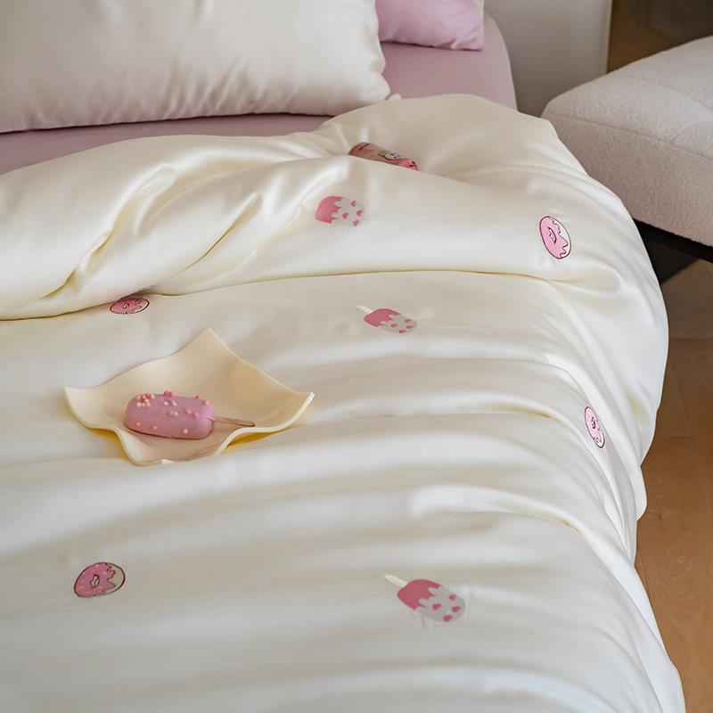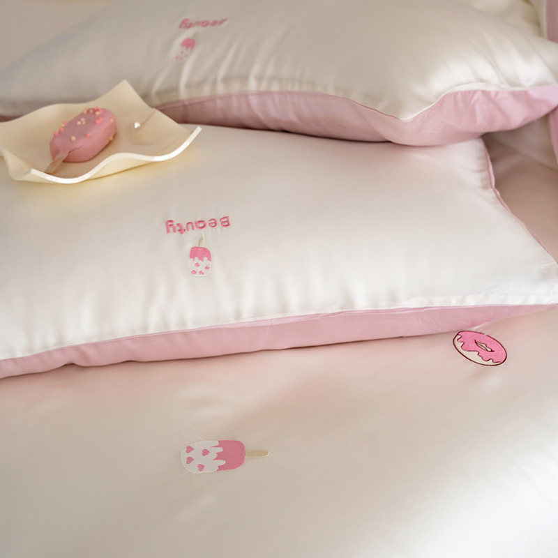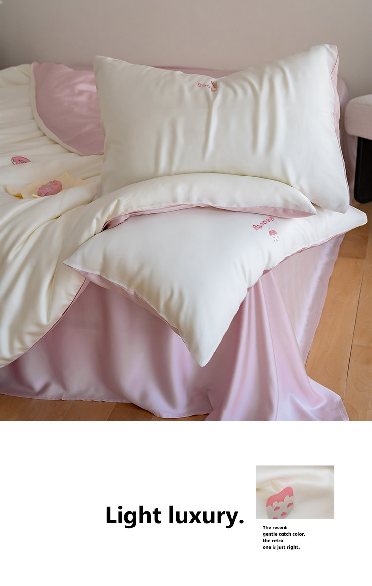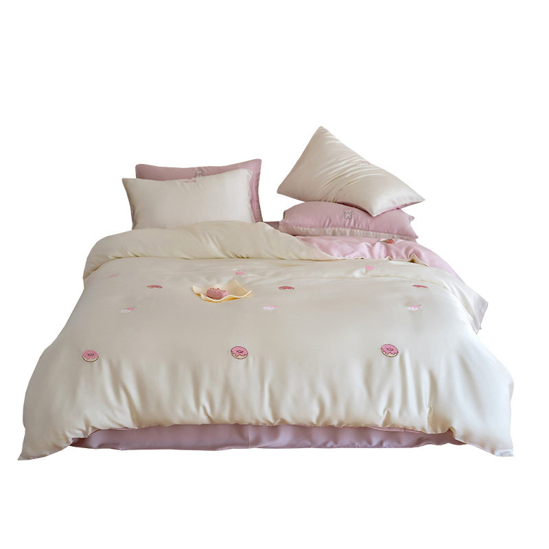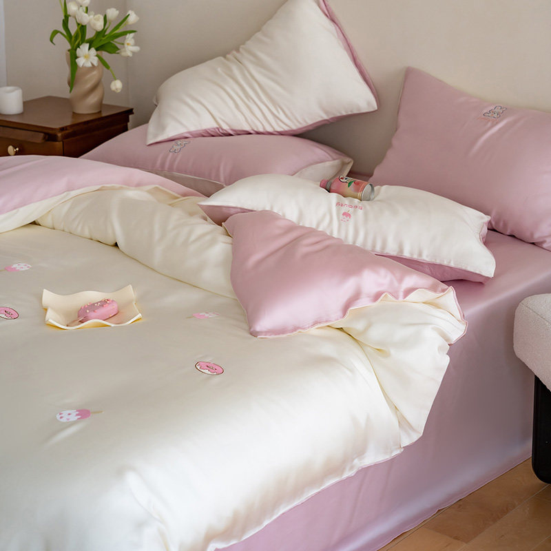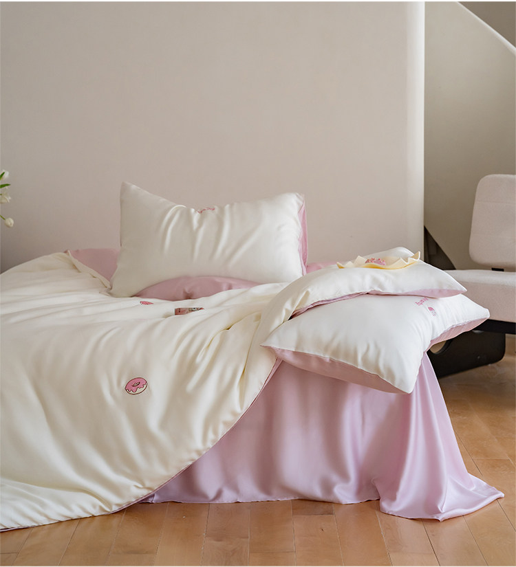 Милый розовый двусторонний летний комплект, шелковая простыня, пододеяльник, покрывало, 80 шт, 4 предмета, 3 предмета