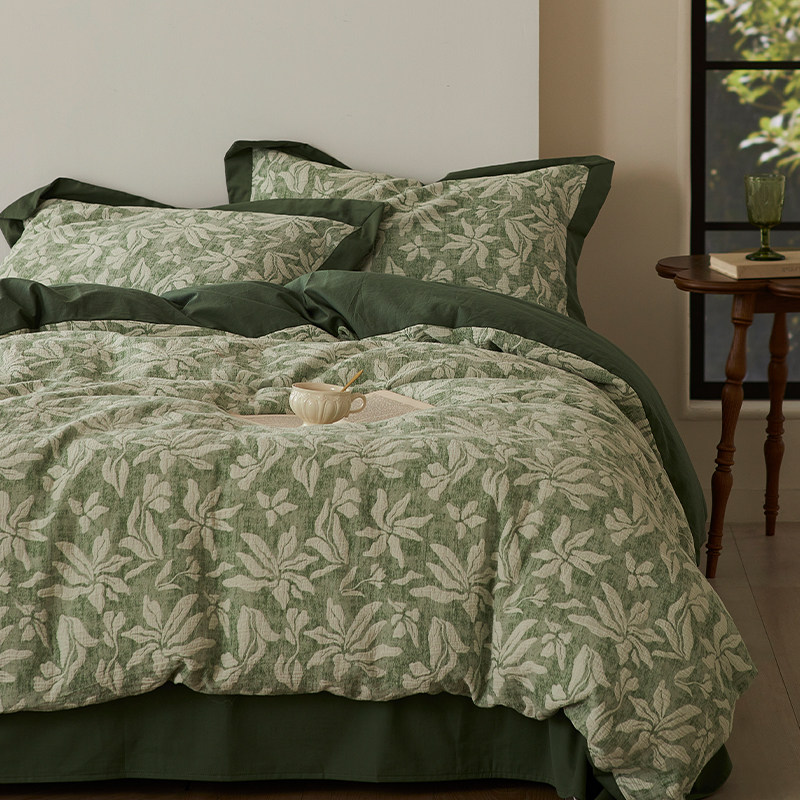 Ретро хлопковый комплект, хлопковая зеленая простыня, универсальный пододеяльник, изысканный стиль, 4 предмета, постельные принадлежности