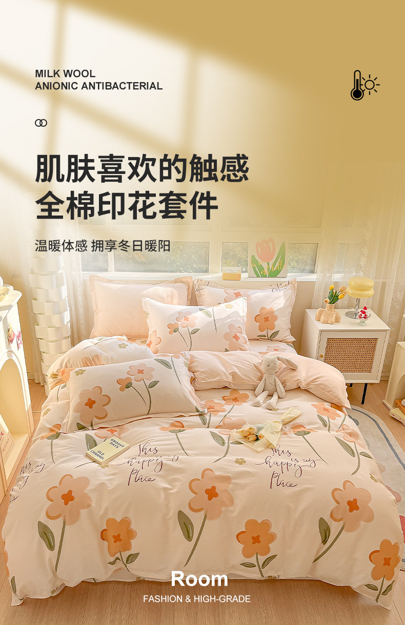 Хлопковый комплект, хлопковая простыня, пододеяльник для школьников и студентов, 4 предмета, 3 предмета