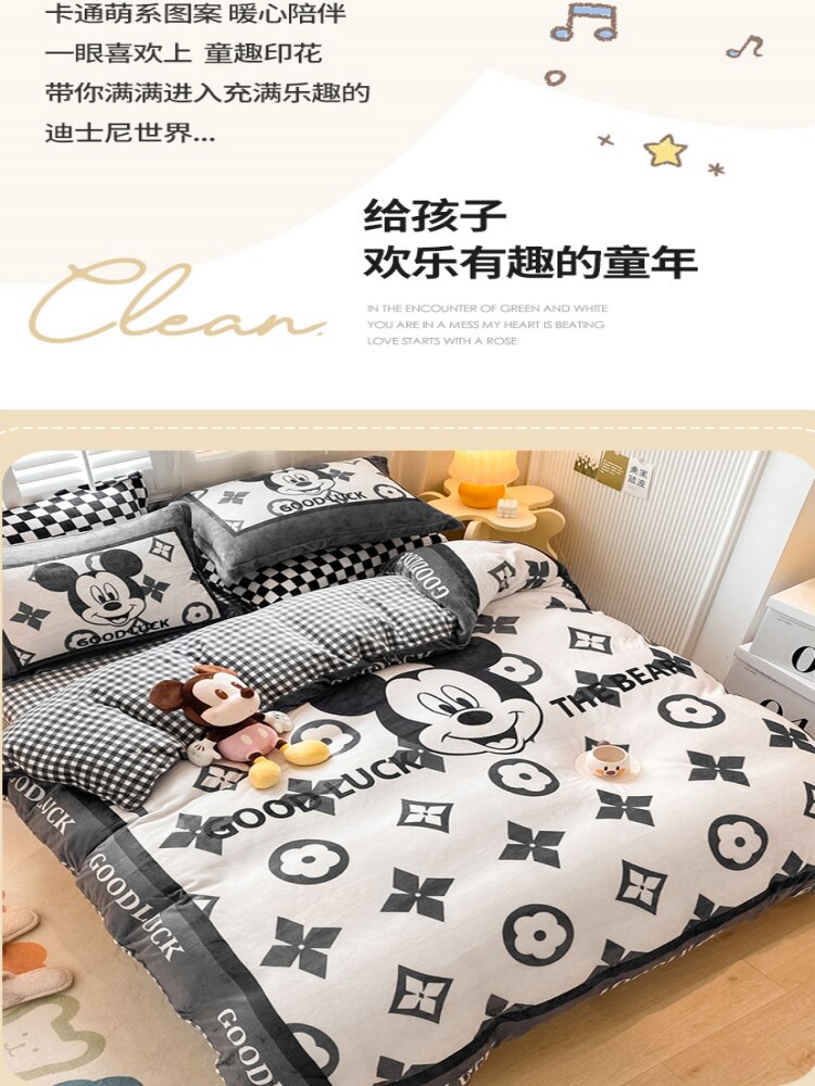 Мультяшный зимний двусторонний комплект, коралловая фланелевая простыня, пододеяльник для кроватки, 4 предмета