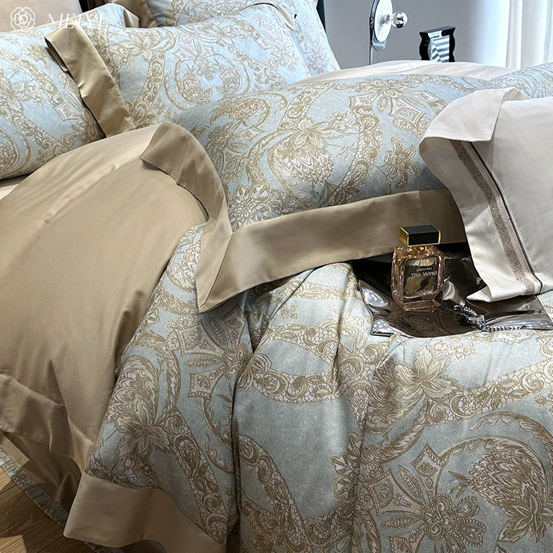 Хлопковый комплект, пододеяльник, демисезонное покрывало, изысканный стиль, европейский стиль, 4 предмета, увеличенная толщина