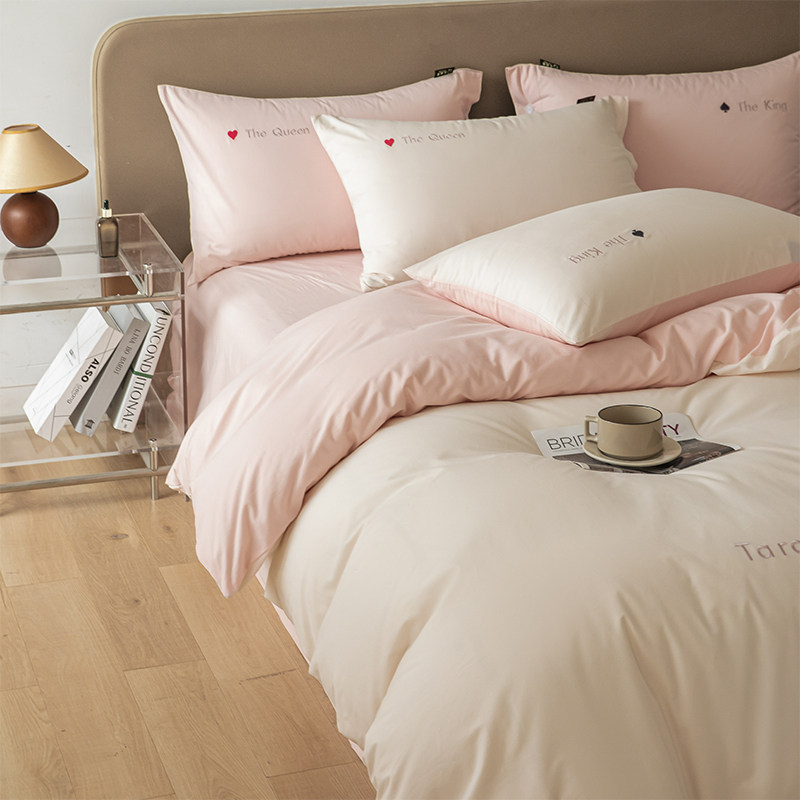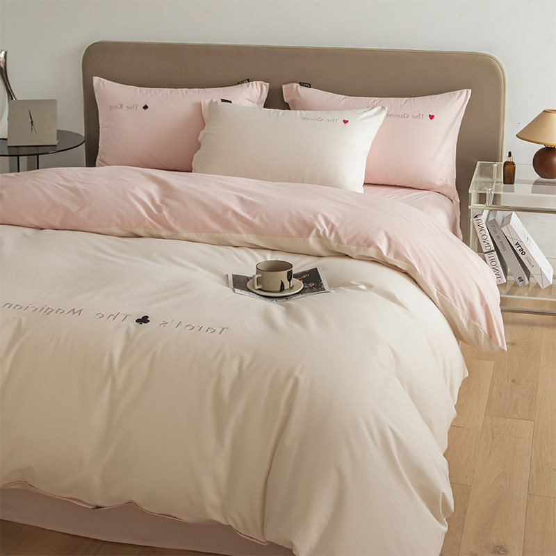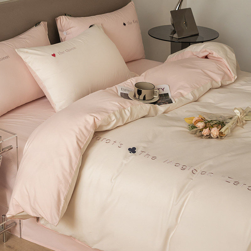 Демисезонный хлопковый комплект, простыня, пододеяльник, покрывало, 4 предмета, легкий роскошный стиль, изысканный стиль, увеличенная толщина