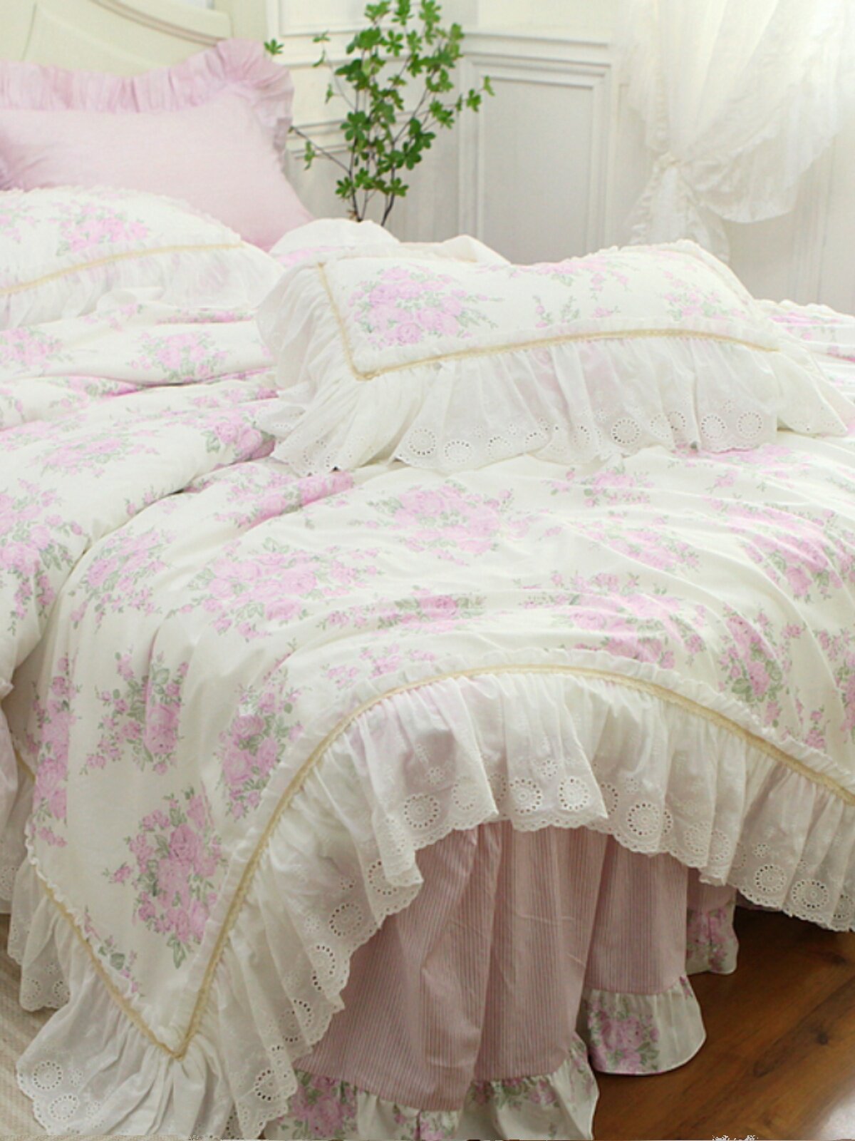 - Ланная нижняя розовая кровать юбка двойной лотос лист края четырехлетних набор