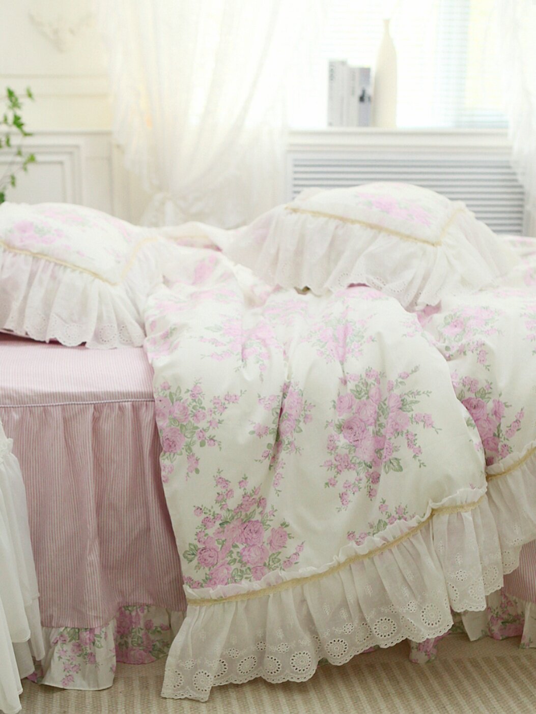 - Lan di Rose Bed Bubts, тяжелые работники, вышитые четырехэтажными наборами