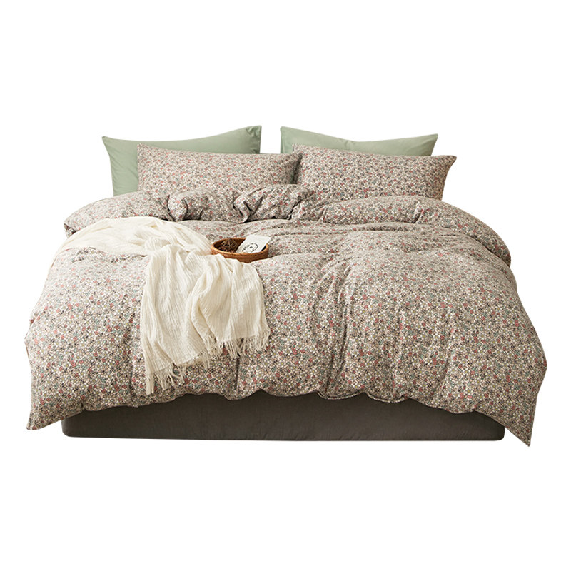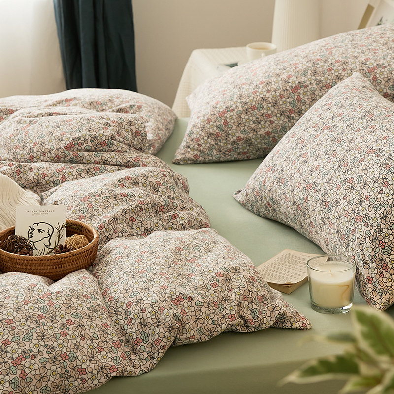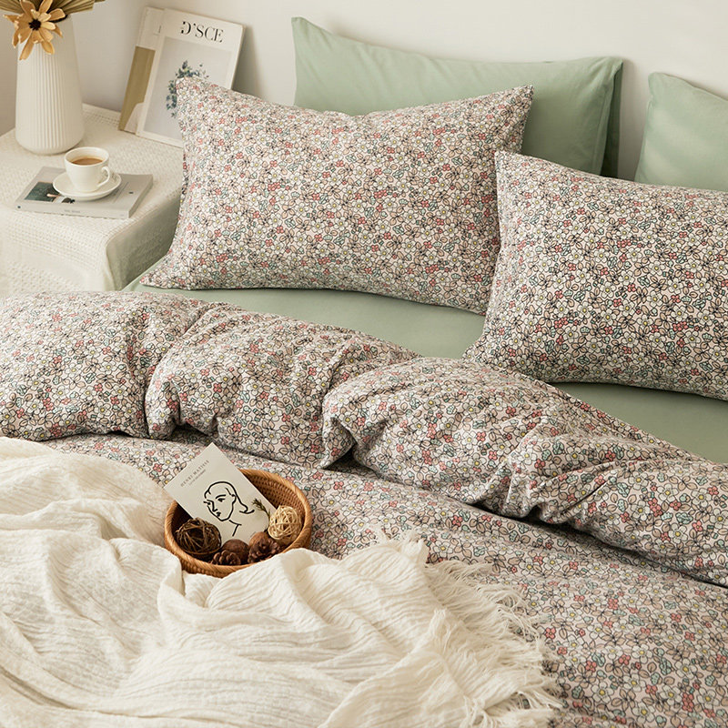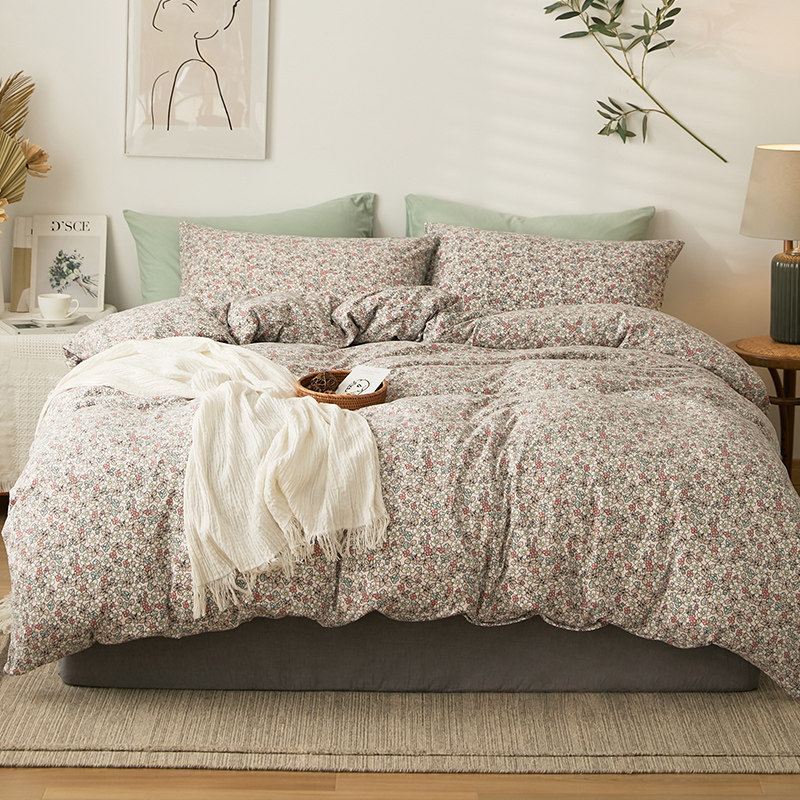 Хлопковый трикотажный комплект, кровать, простыня, пододеяльник, цветочный принт, 4 предмета, постельные принадлежности