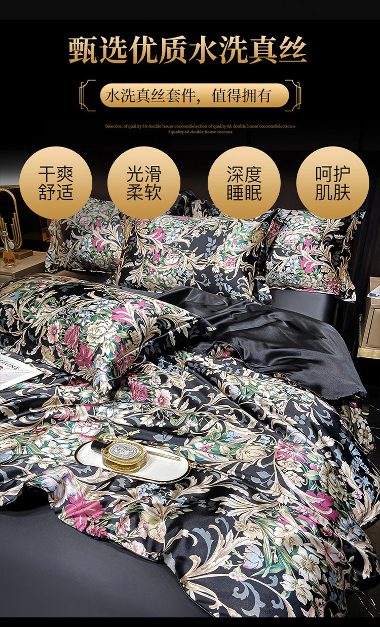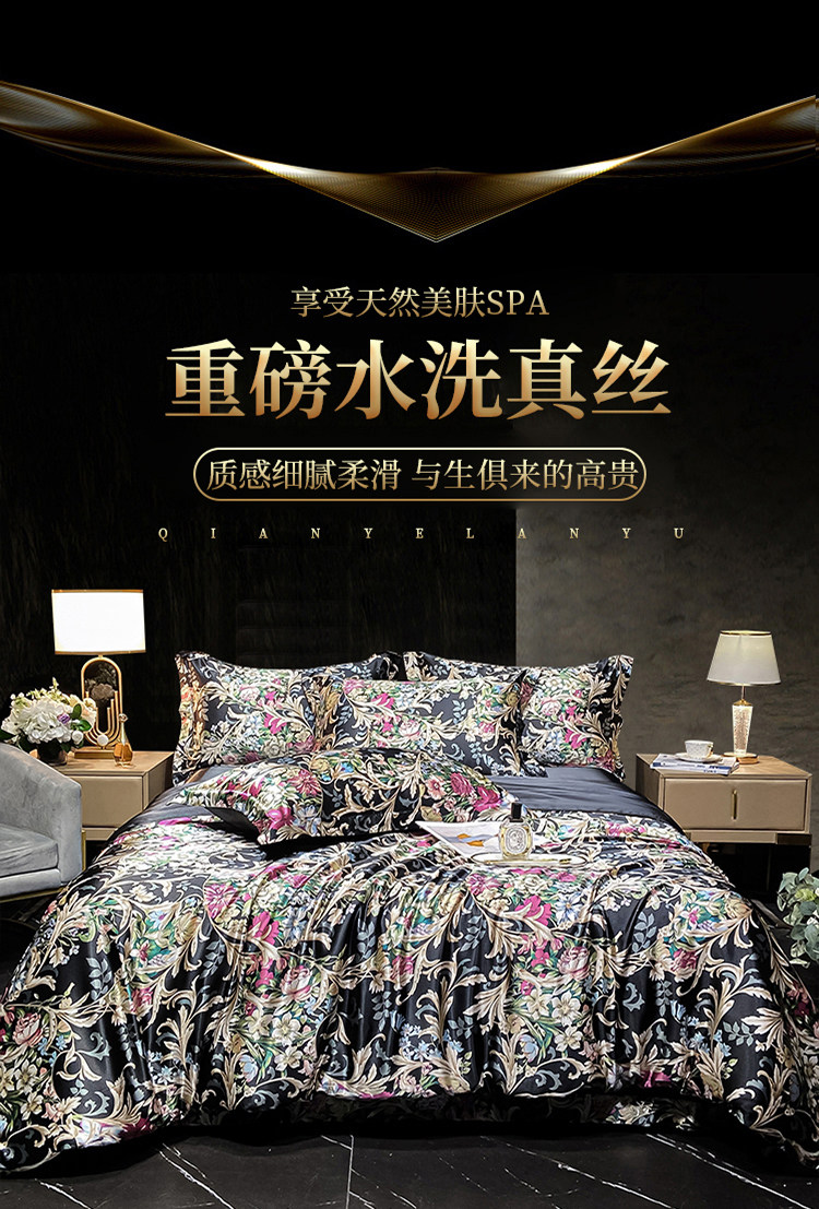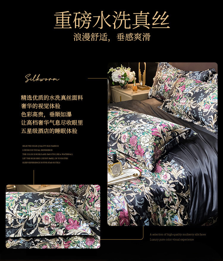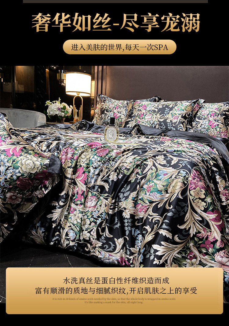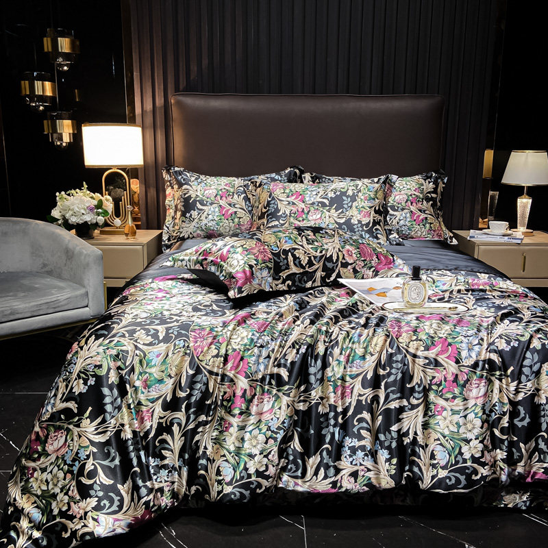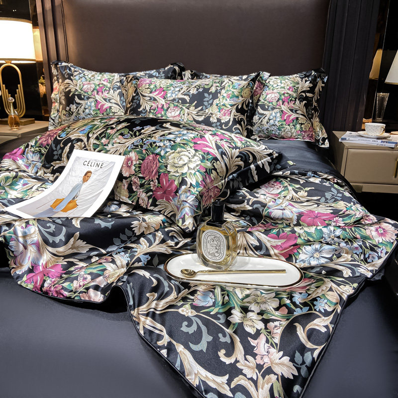 Шелковая простыня, шелковый комплект, шелковистый пододеяльник, кровать, покрывало, 4 предмета, легкий роскошный стиль, изысканный стиль