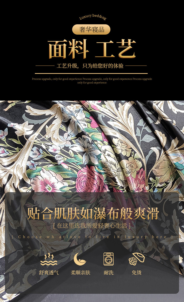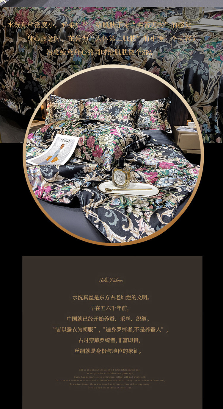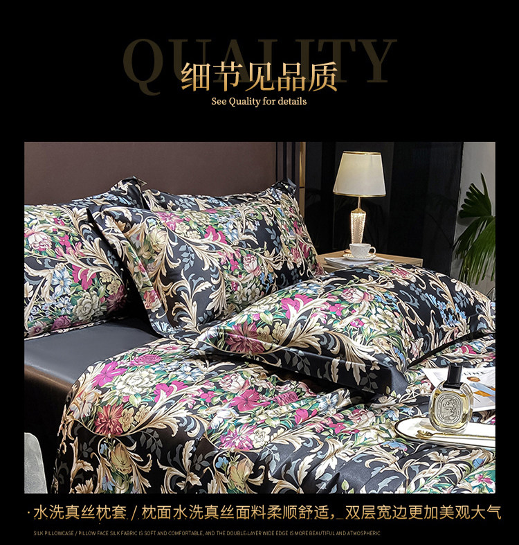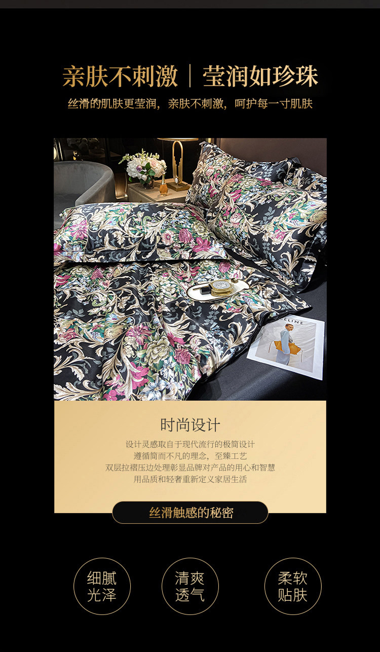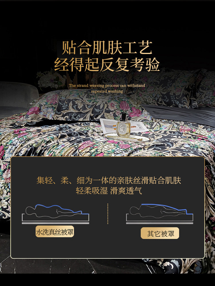 Шелковая простыня, шелковый комплект, шелковистый пододеяльник, кровать, покрывало, 4 предмета, легкий роскошный стиль, изысканный стиль