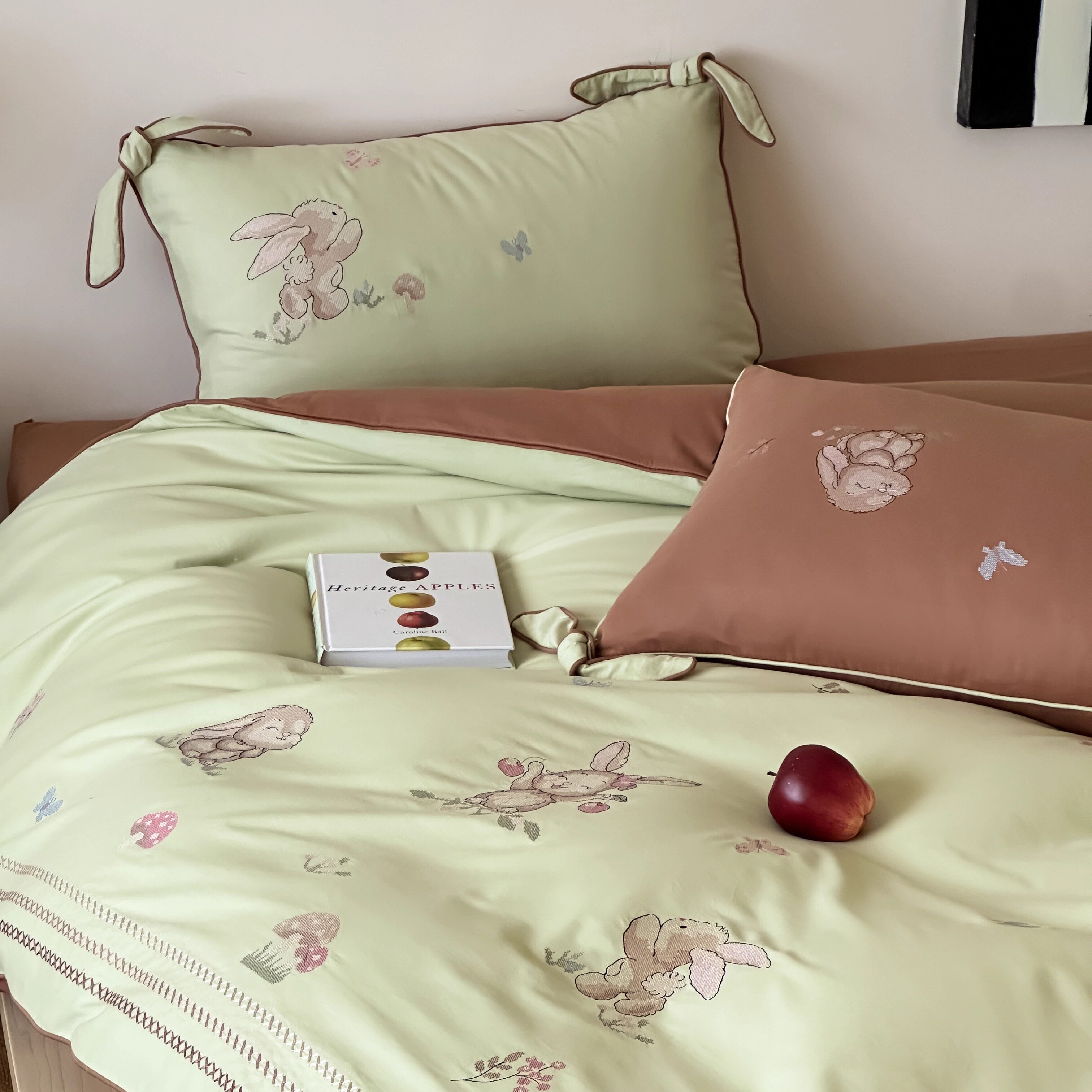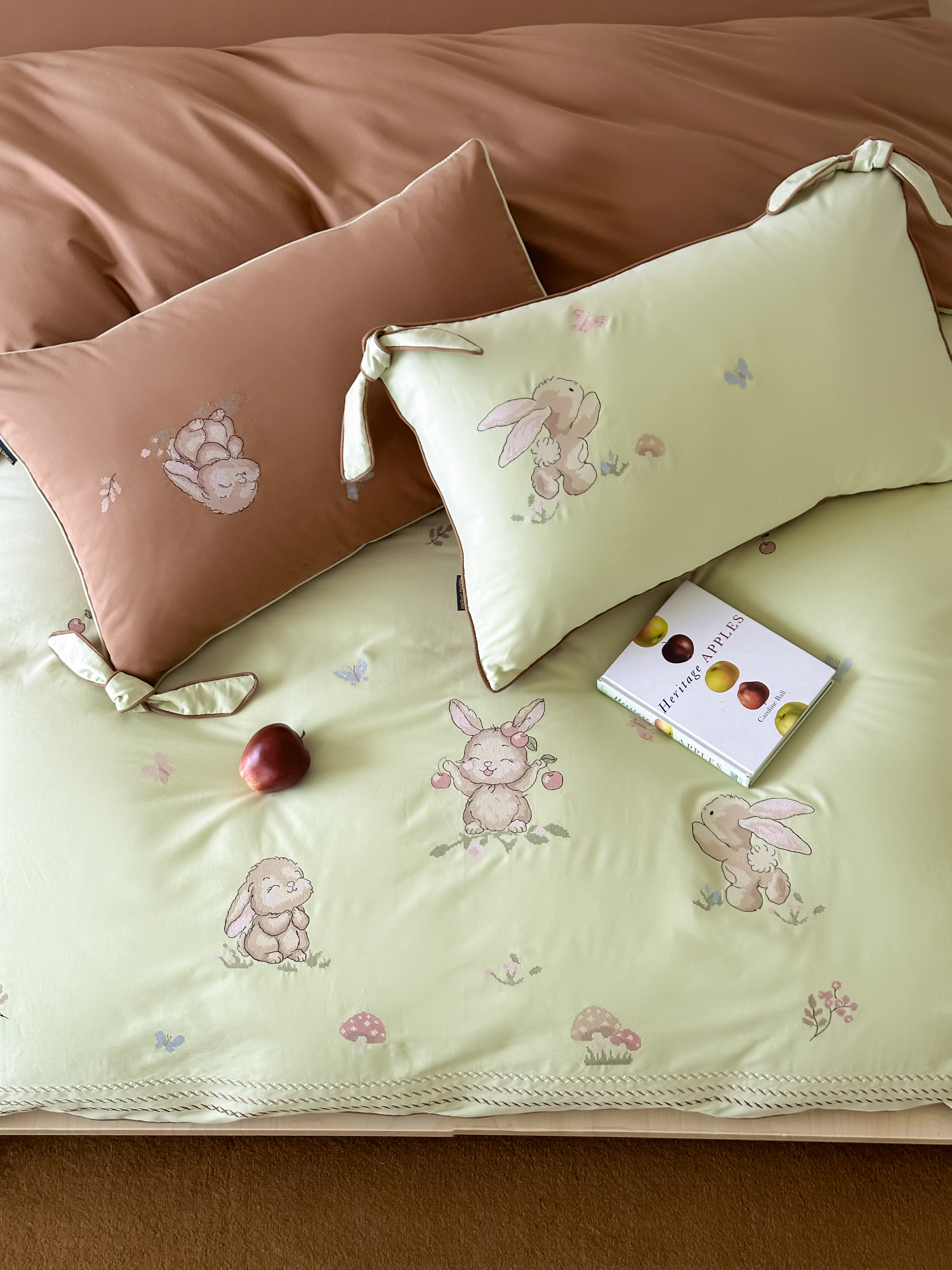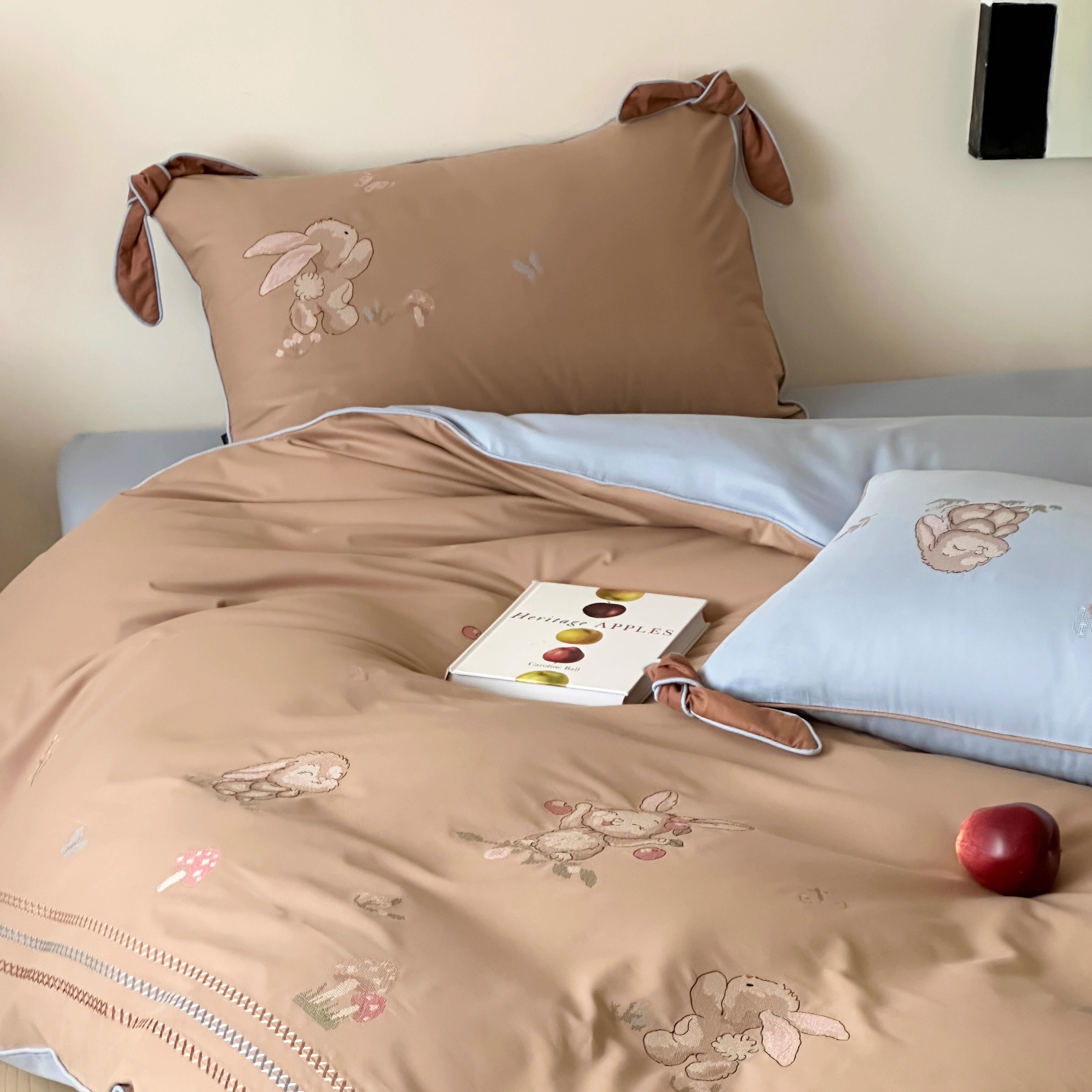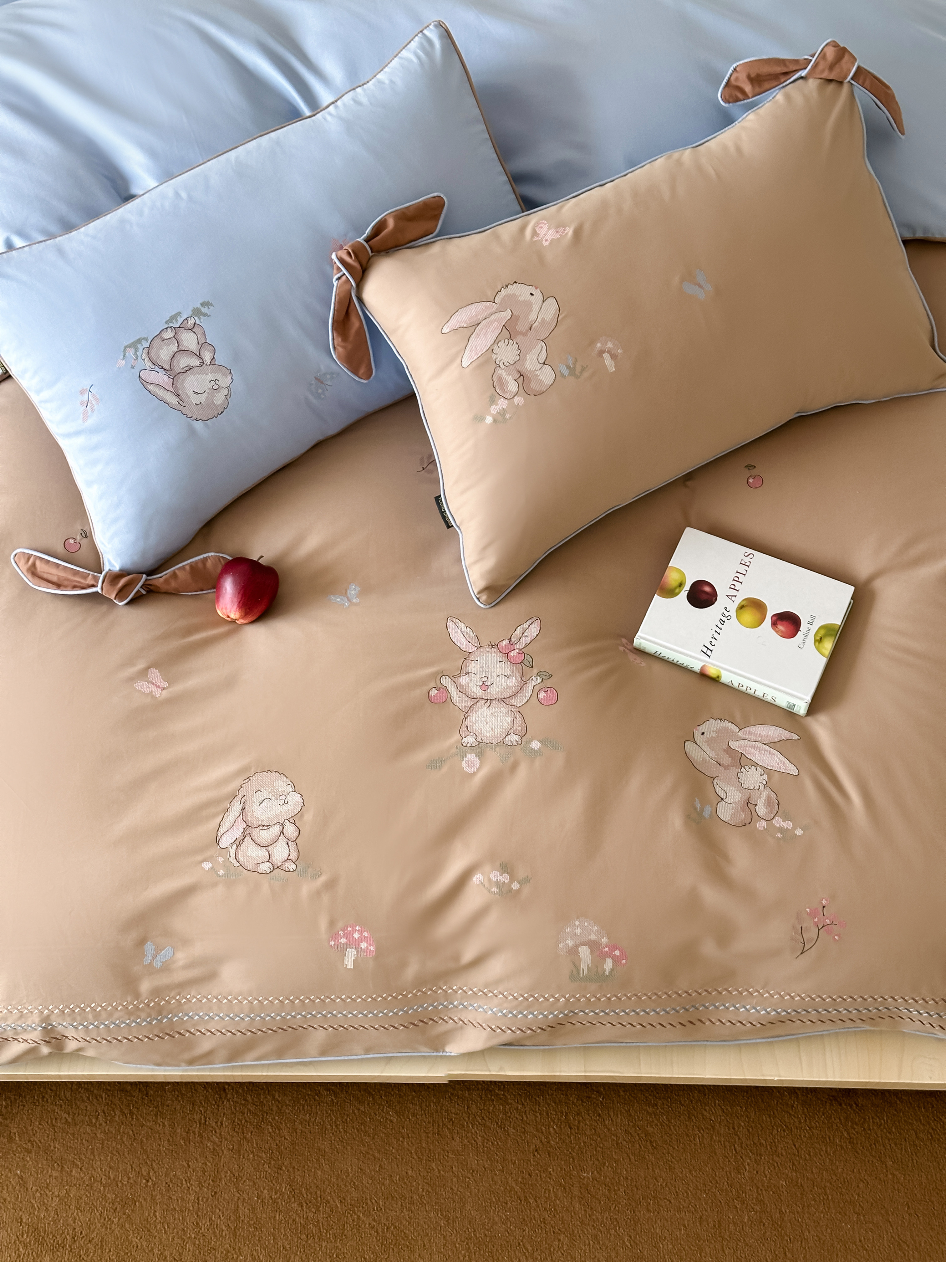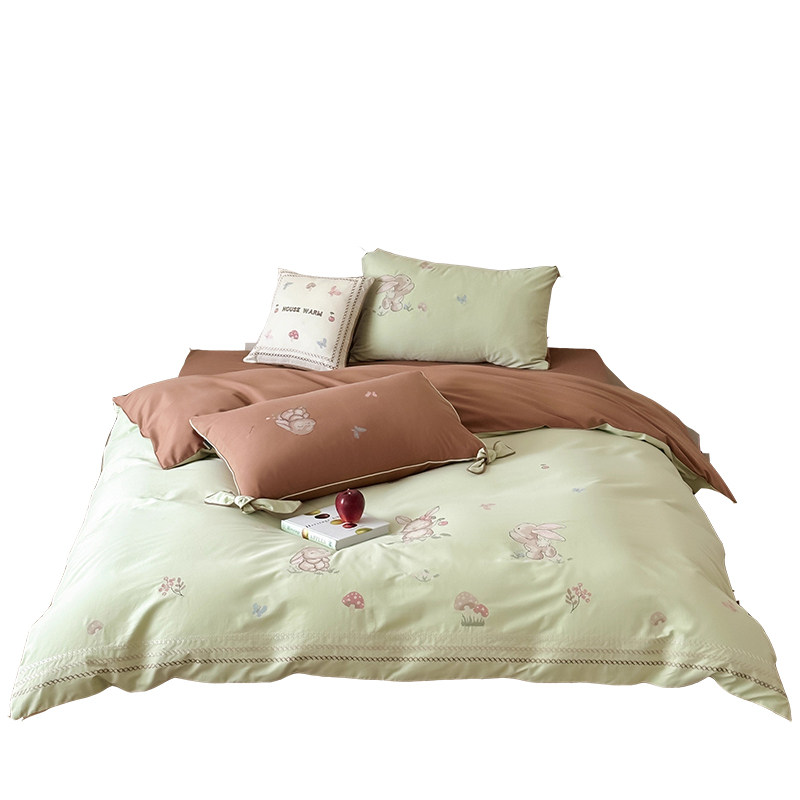 Брендовая детская хлопковая простыня, комплект, кролик с бантиком, хлопковое одеяло, пододеяльник, 4 предмета, с вышивкой, постельные принадлежности