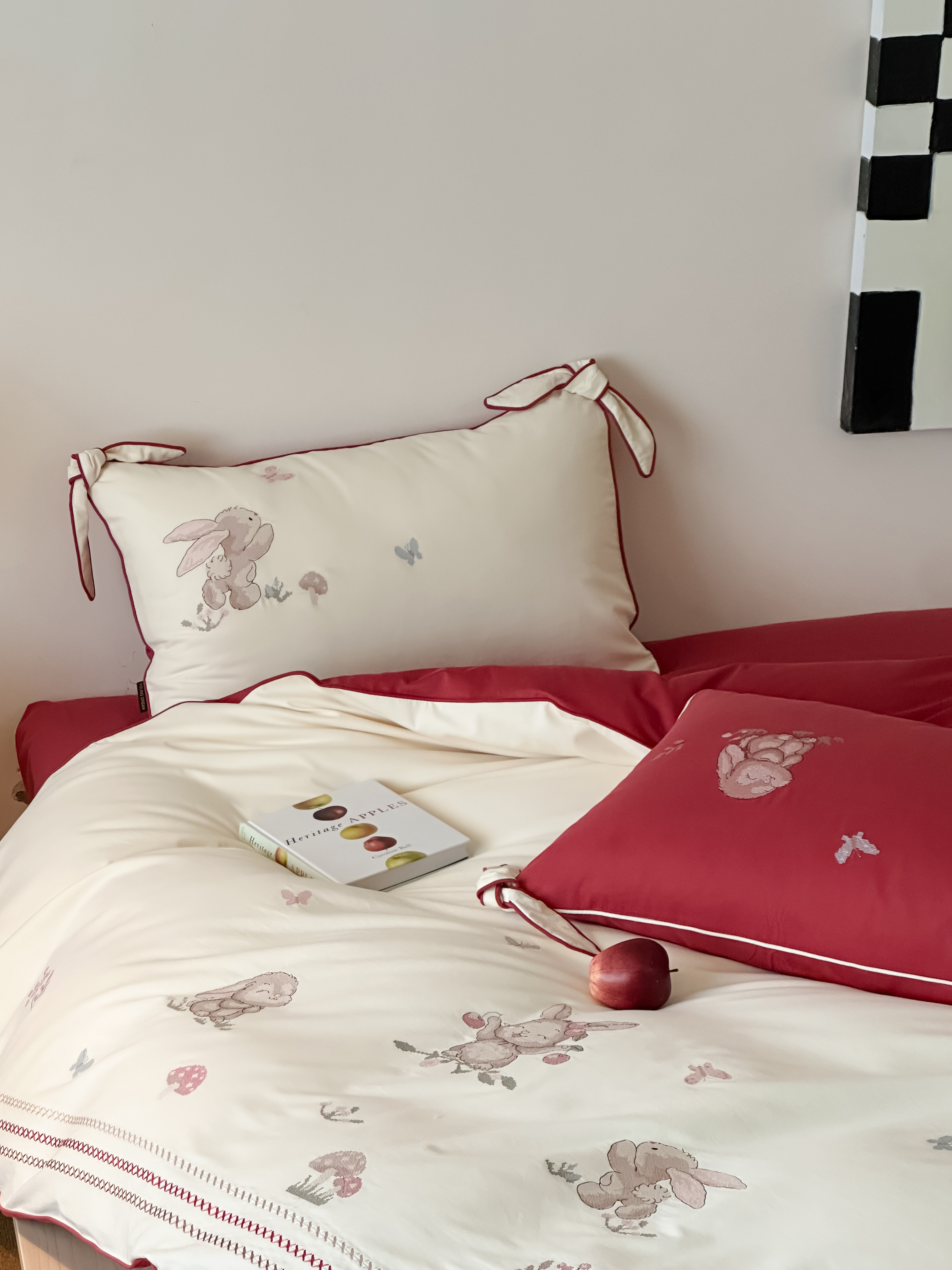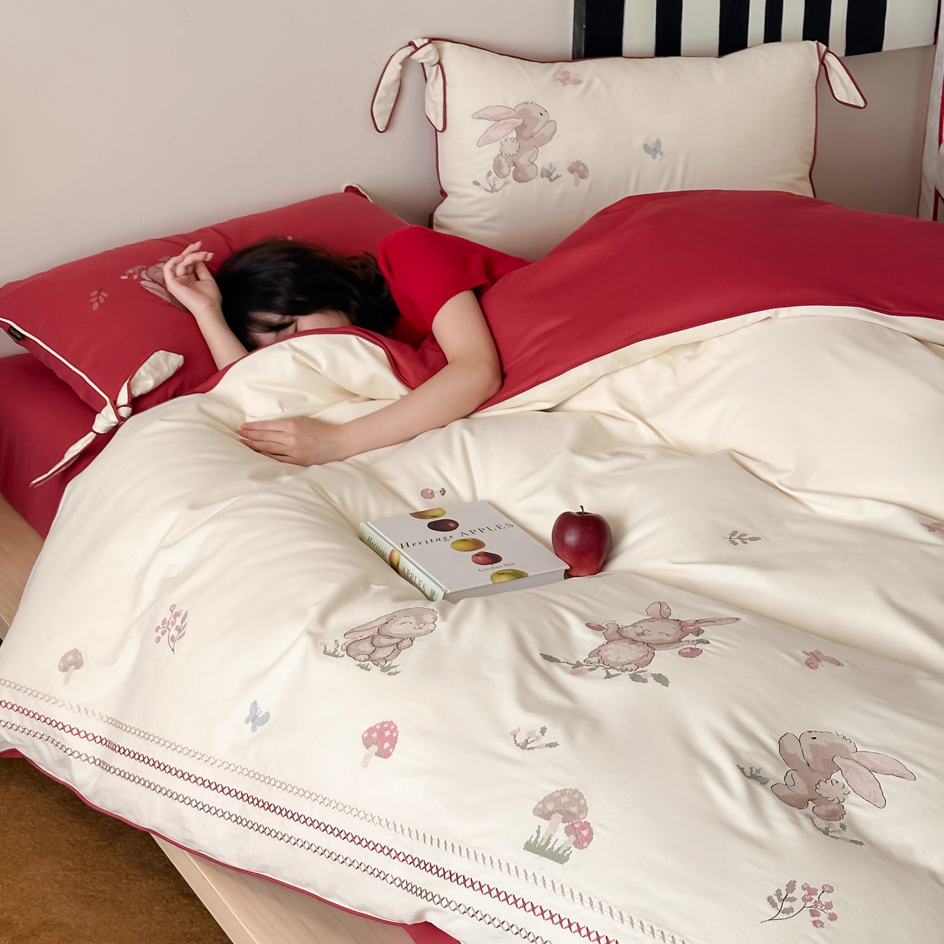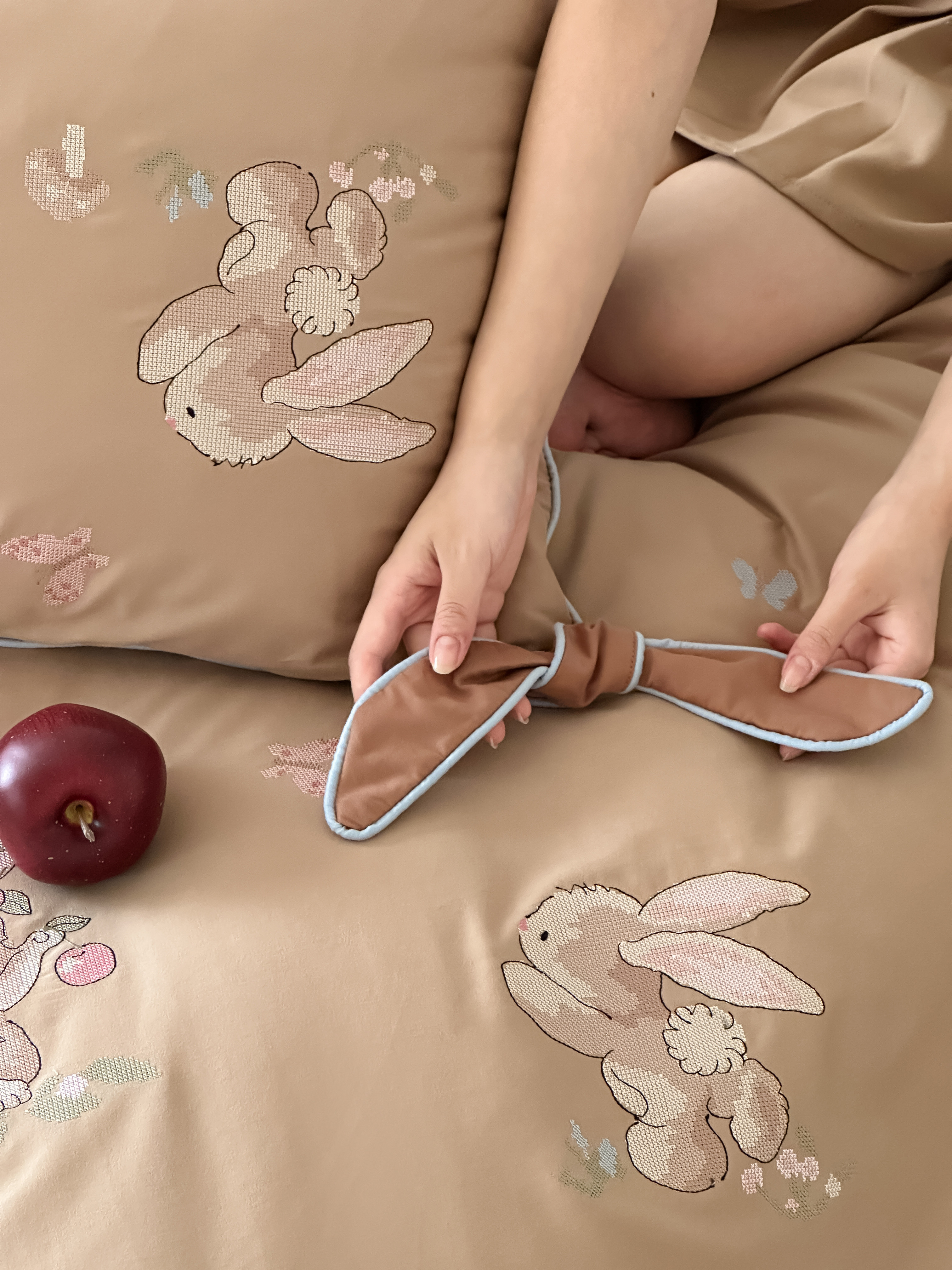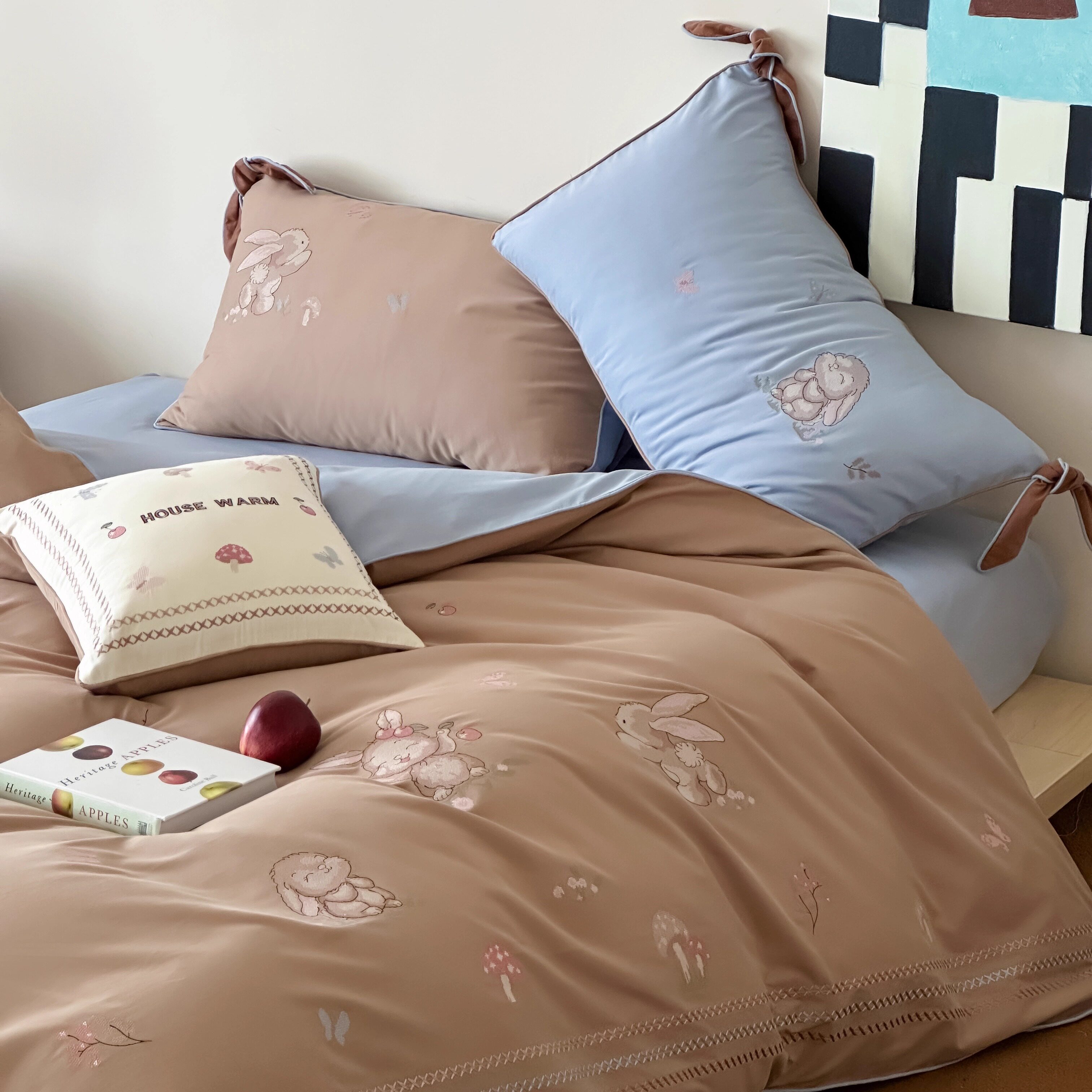 Брендовая детская хлопковая простыня, комплект, кролик с бантиком, хлопковое одеяло, пододеяльник, 4 предмета, с вышивкой, постельные принадлежности